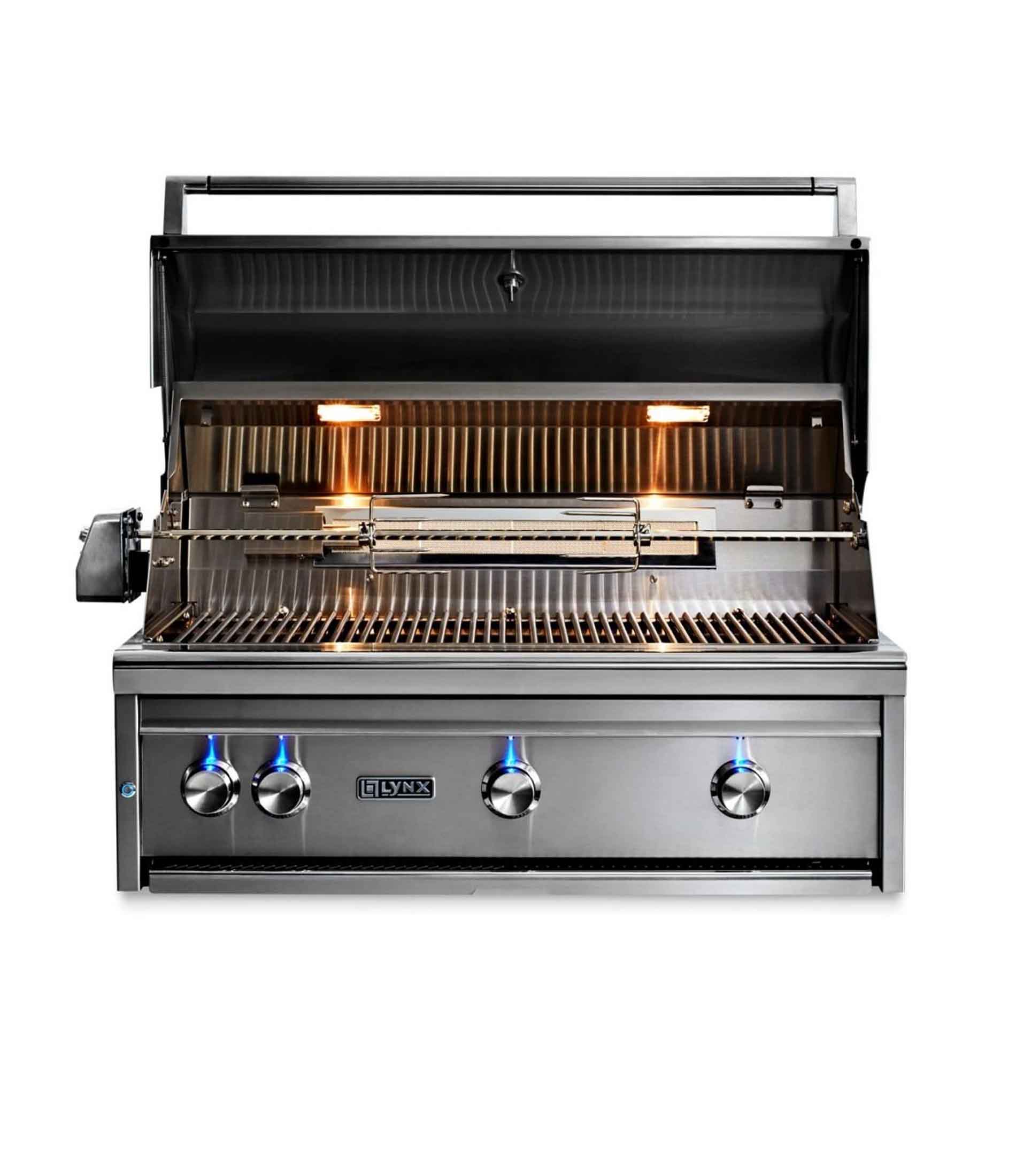 The Lynx 36″ Professional Built-In Grill combines elegant design with powerful performance. Constructed from seamlessly welded 304™ stainless steel, it offers durability and weather resistance. Three cast ceramic burners deliver 75,000 BTUs of even, radiant heat, reducing flare-ups for consistent cooking. A dual-speed rotisserie with a 14,000 BTU rear infrared burner enhances versatility for perfect roasts. With 935 sq in of cooking space, this grill is ideal for both everyday meals and entertaining guests.