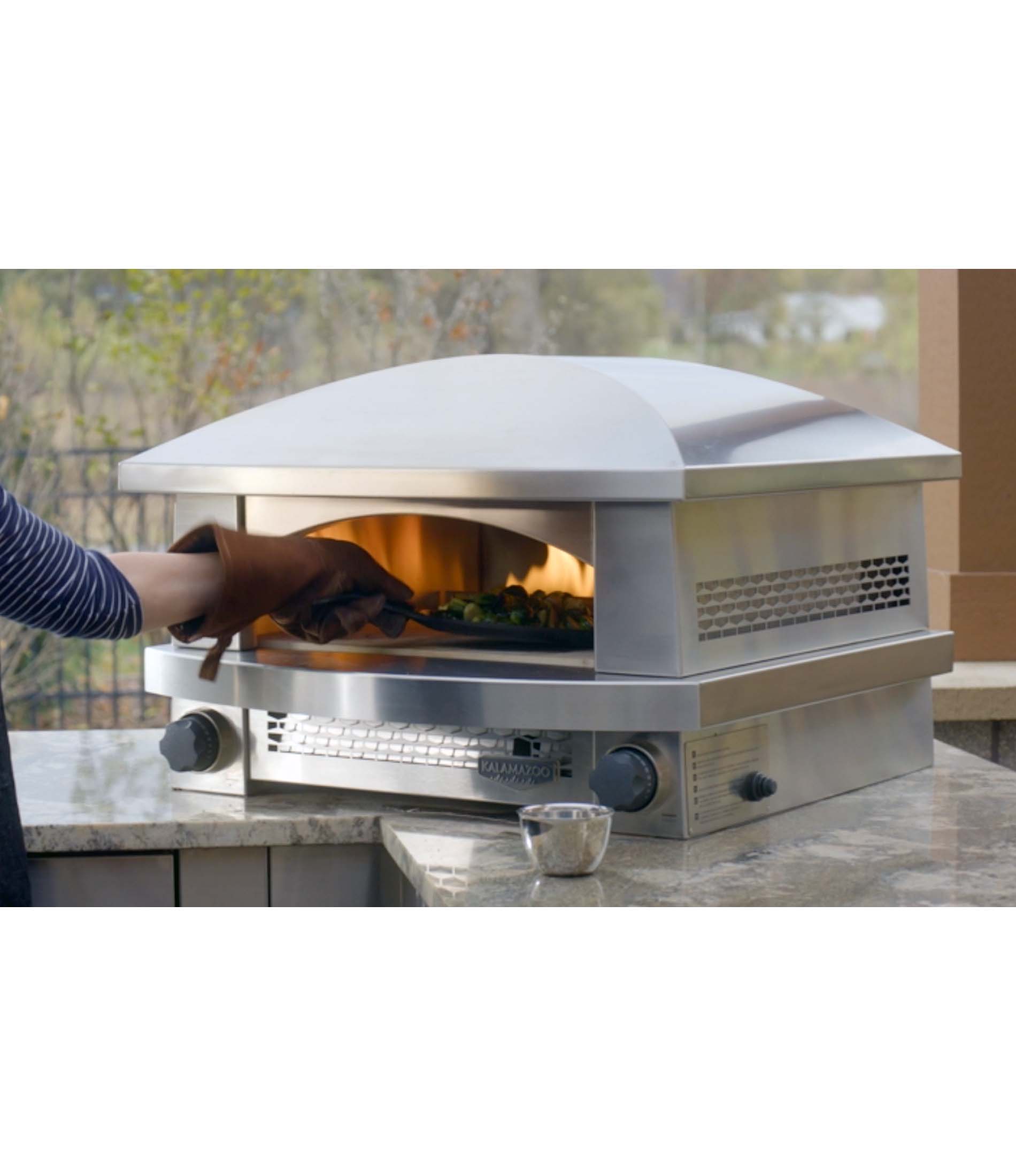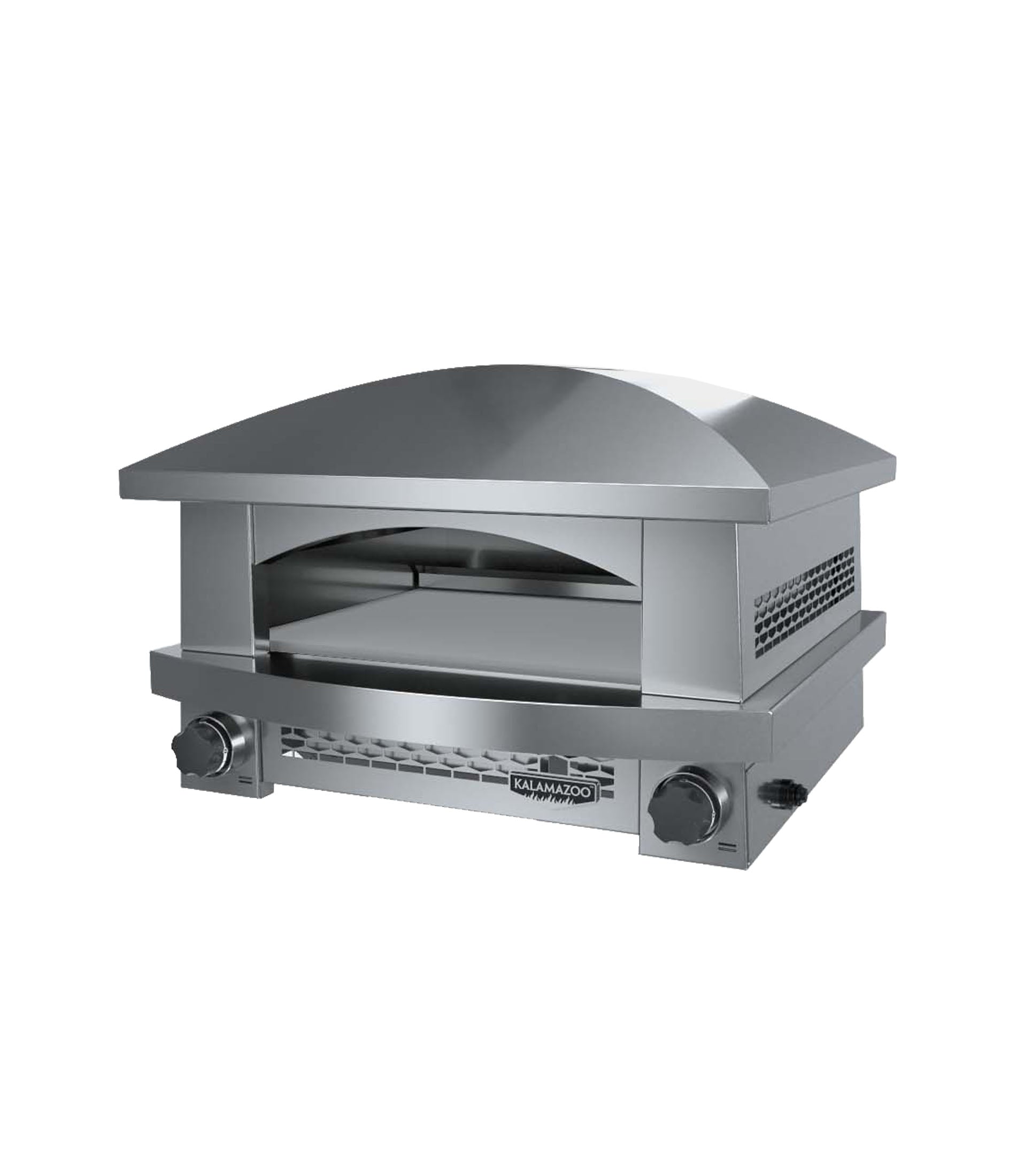 The Kalamazoo Countertop Artisan Fire Pizza Oven is designed to deliver authentic, flame-cooked results with remarkable ease. Its powerful dual burners generate intense heat from both above and below, creating the ideal environment for crafting restaurant-quality pizzas outdoors. Beyond pizza, the oven’s versatile performance allows for beautifully roasted meats, vegetables, and seafood, all enhanced by its distinctive open-flame character. Constructed from durable 304 stainless steel, it is thoughtfully designed to withstand outdoor conditions without compromising its refined appearance. With its sleek profile, intuitive control, and professional-grade performance, this oven brings elevated cooking to any outdoor space.