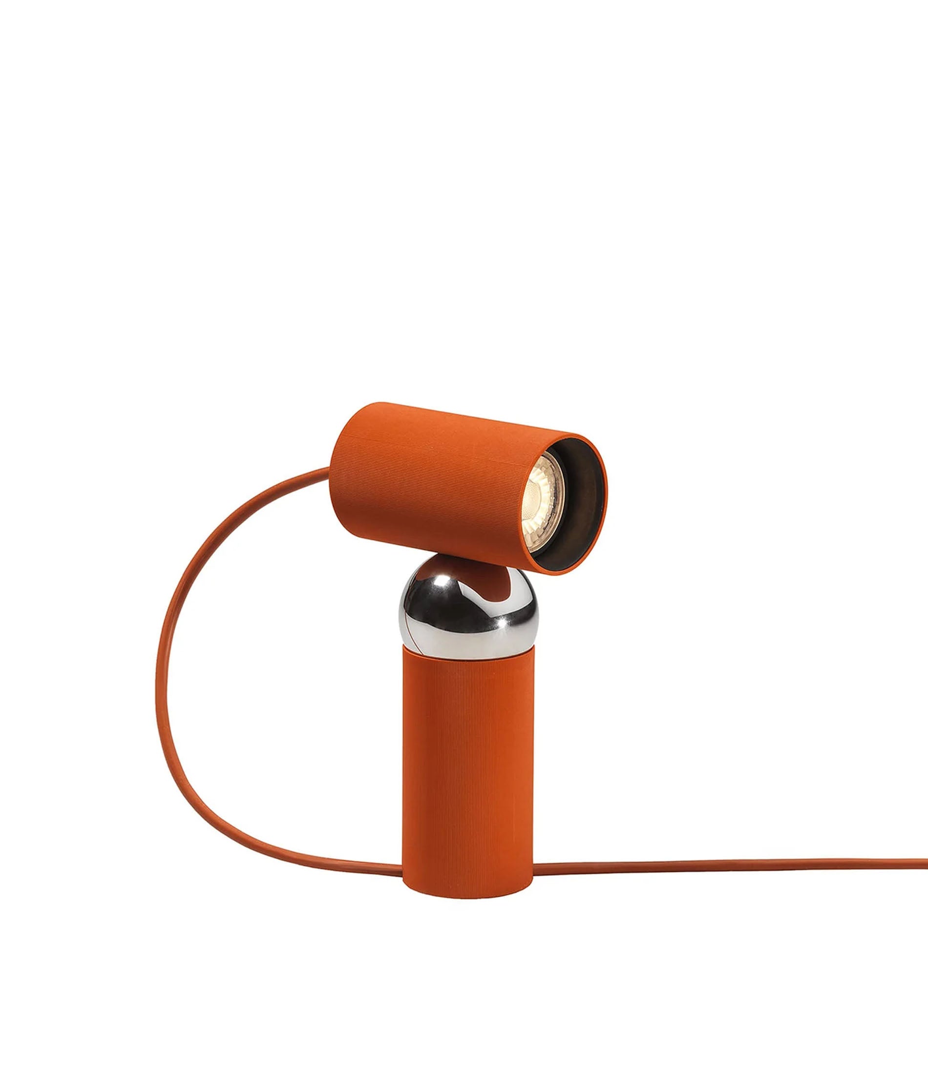Experience precise and eco-friendly lighting with Bilboquet table lamp. Made of eco-friendly materials, its adjustable head and integrated LED bulb provide direct lighting. The steel sphere allows for easy adjustability and the cable can be locked in place for convenience. Designed for recyclability and conforms to ISCC standards.