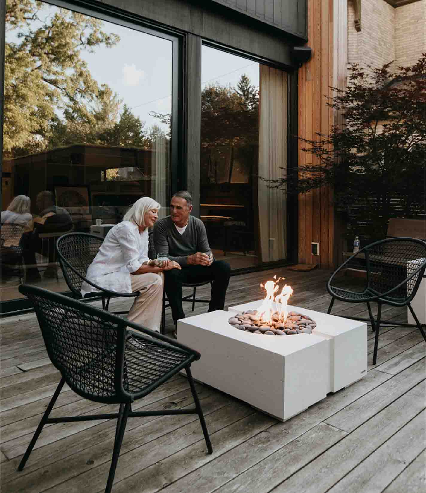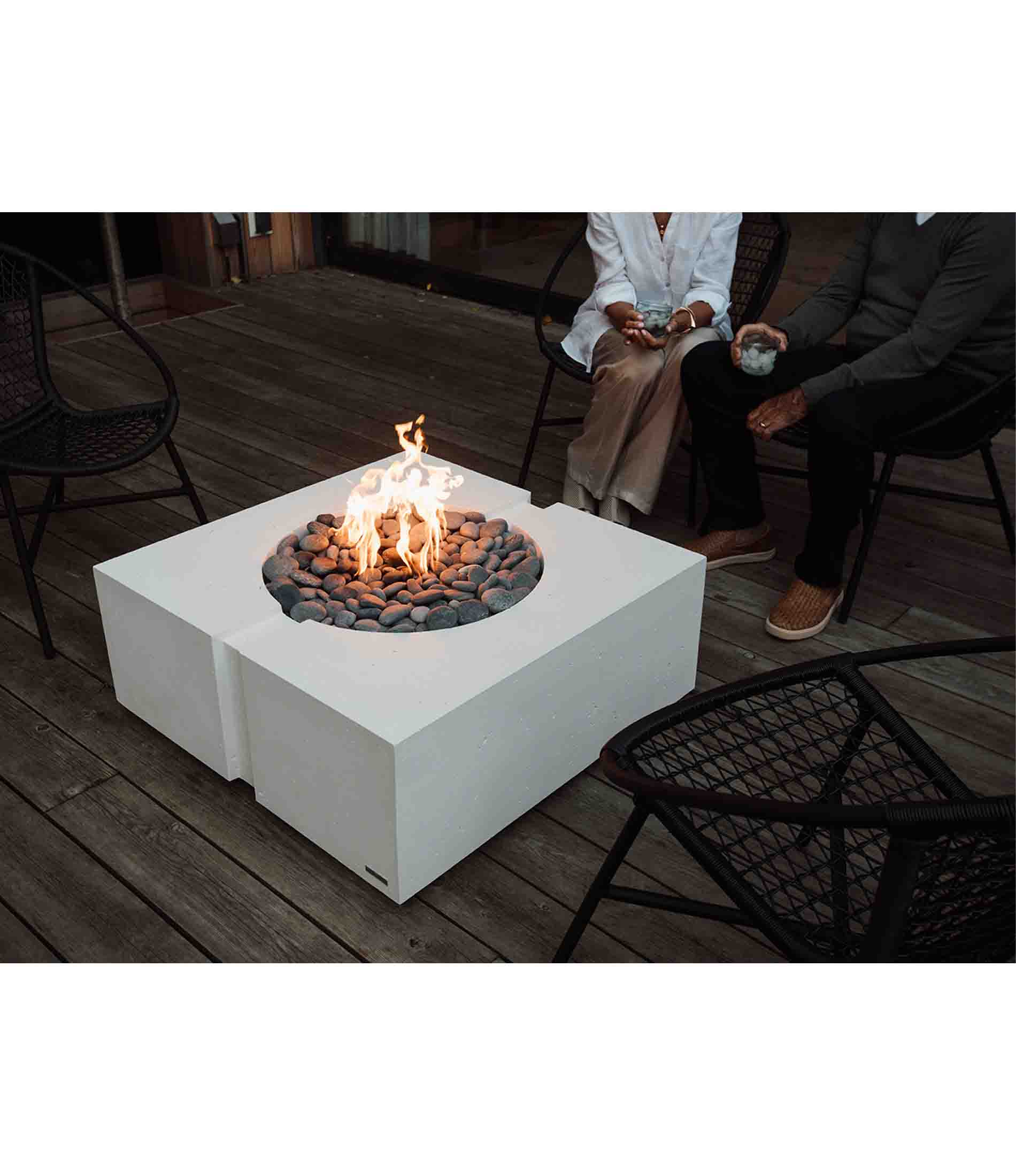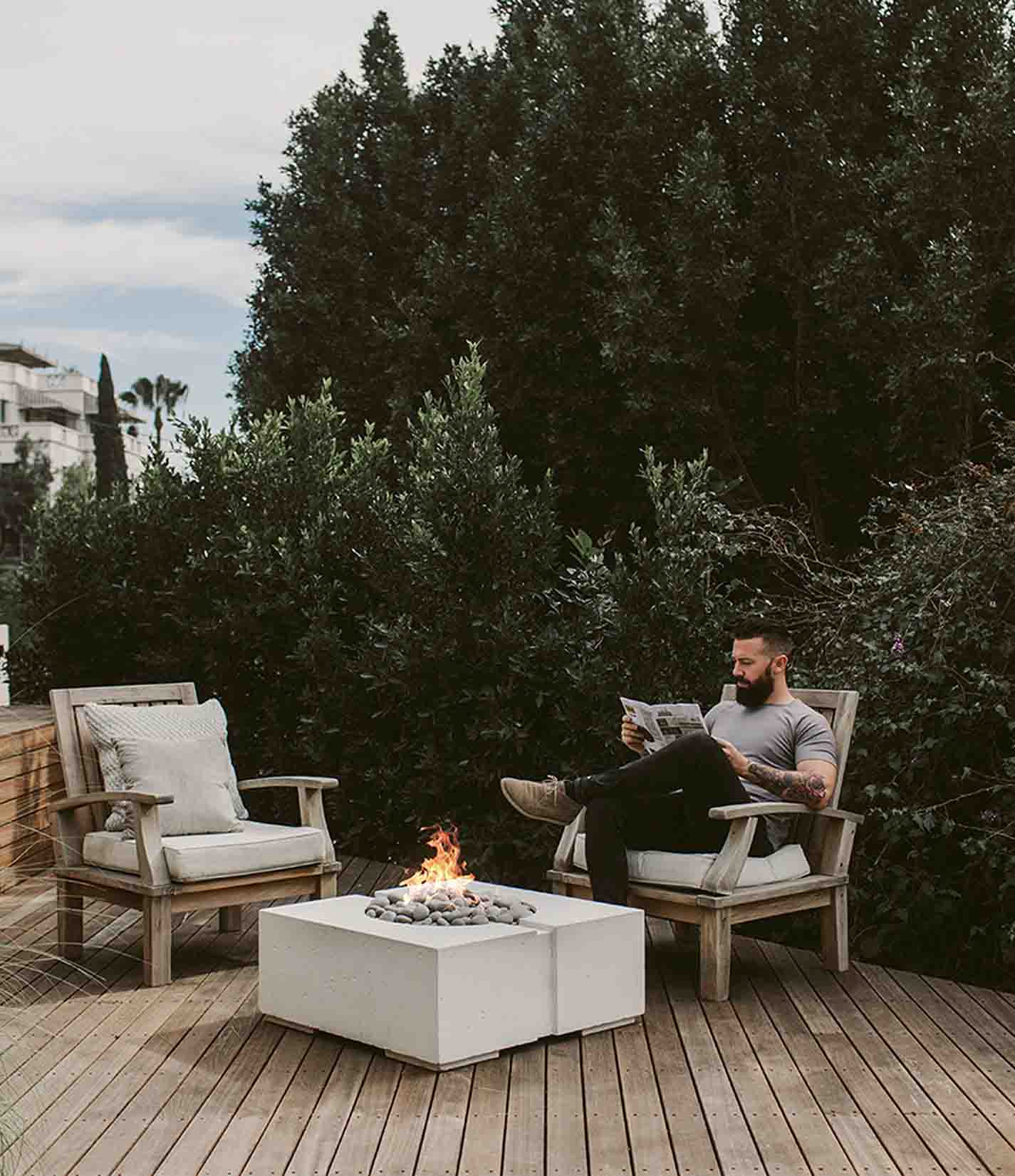 Elevate your outdoor living space with the Dekko Bravo Fire Pit—a harmonious blend of minimalist design and robust functionality. Handcrafted in Canada from Dekko's proprietary ultra-lightweight concrete, the Bravo offers a sleek, square silhouette that complements both modern and traditional outdoor settings. Measuring 32" x 32" x 13", this fire pit serves as an inviting centerpiece, perfect for intimate gatherings or larger social settings. With options for natural gas or propane fuel, and a range of finishes and decorative aggregates, the Bravo combines aesthetic versatility with dependable performance.