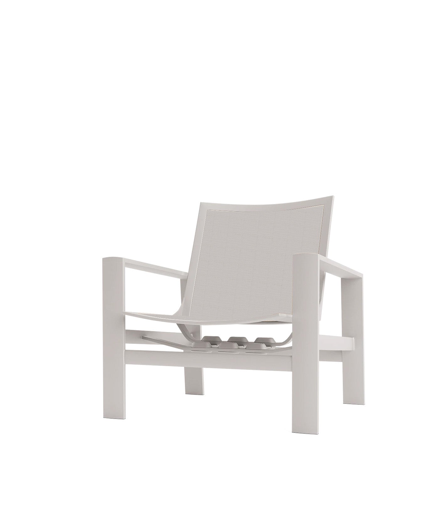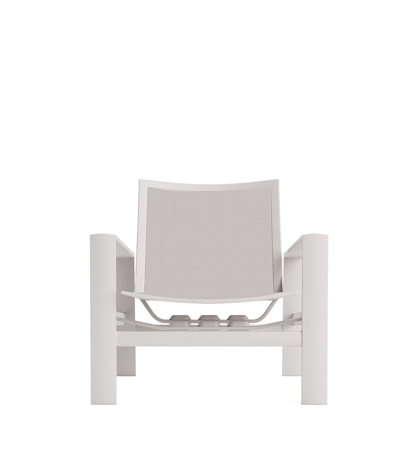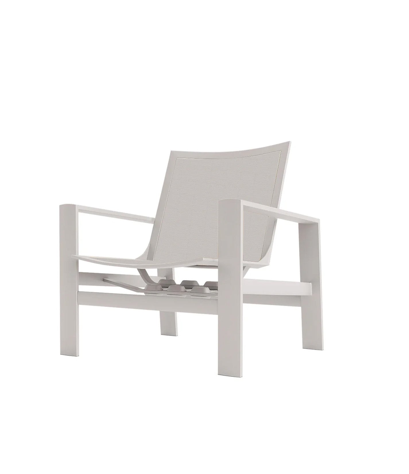 A modernist lounge chair featuring a UV-resistant aluminum frame and a flexible Parabolic sling that conforms to movement, offering ergonomic comfort and sleek design.