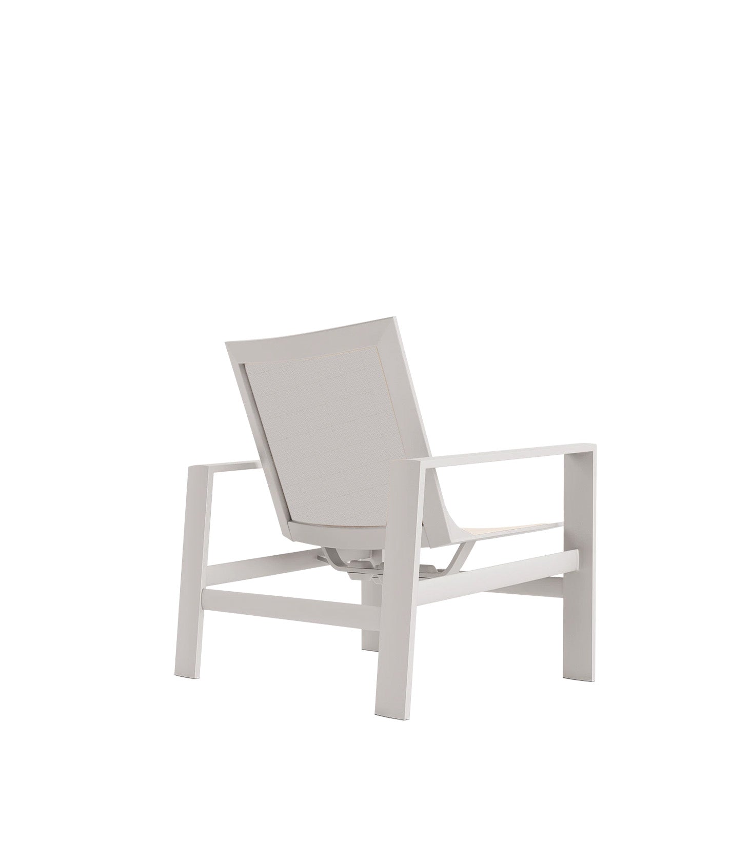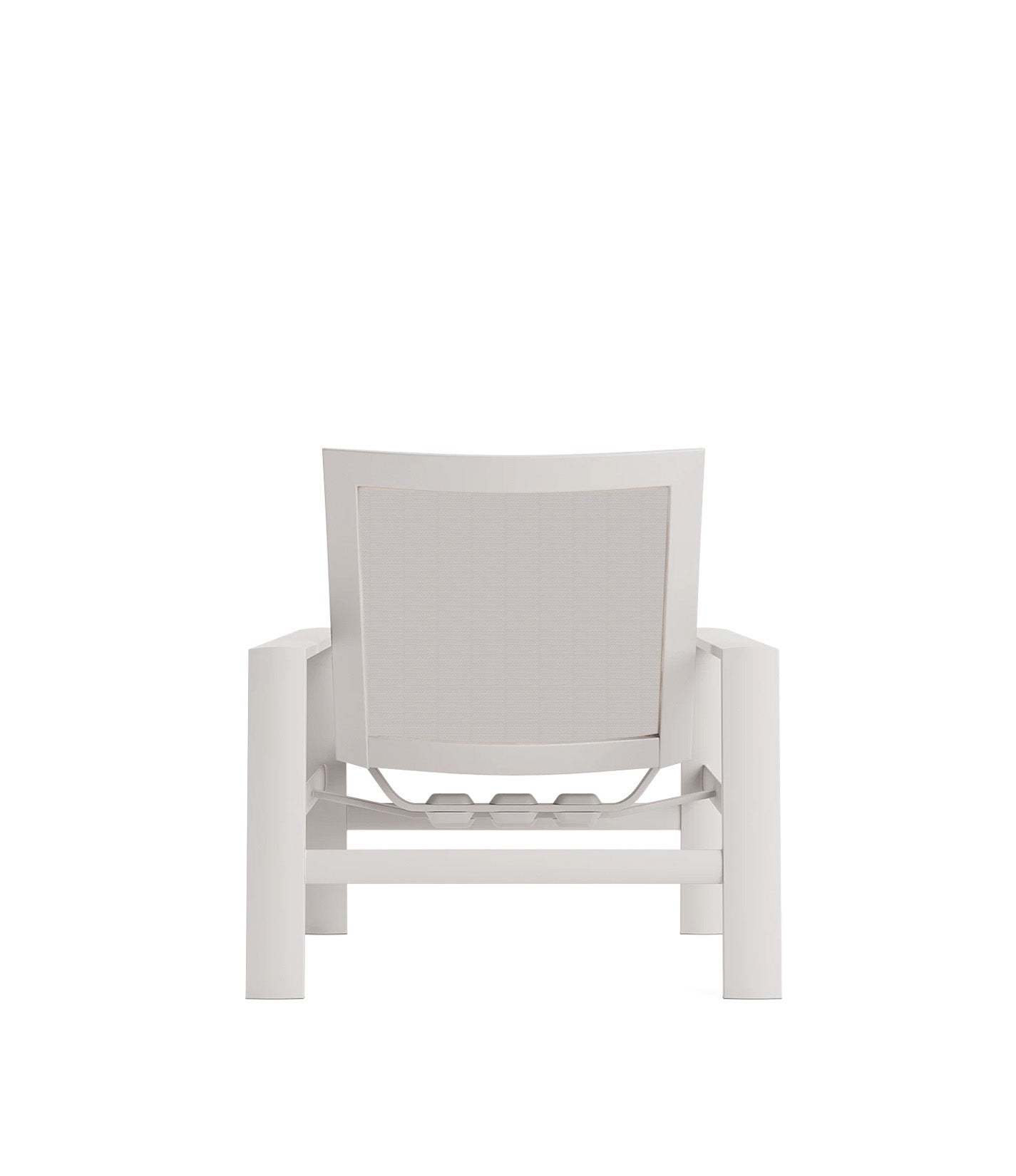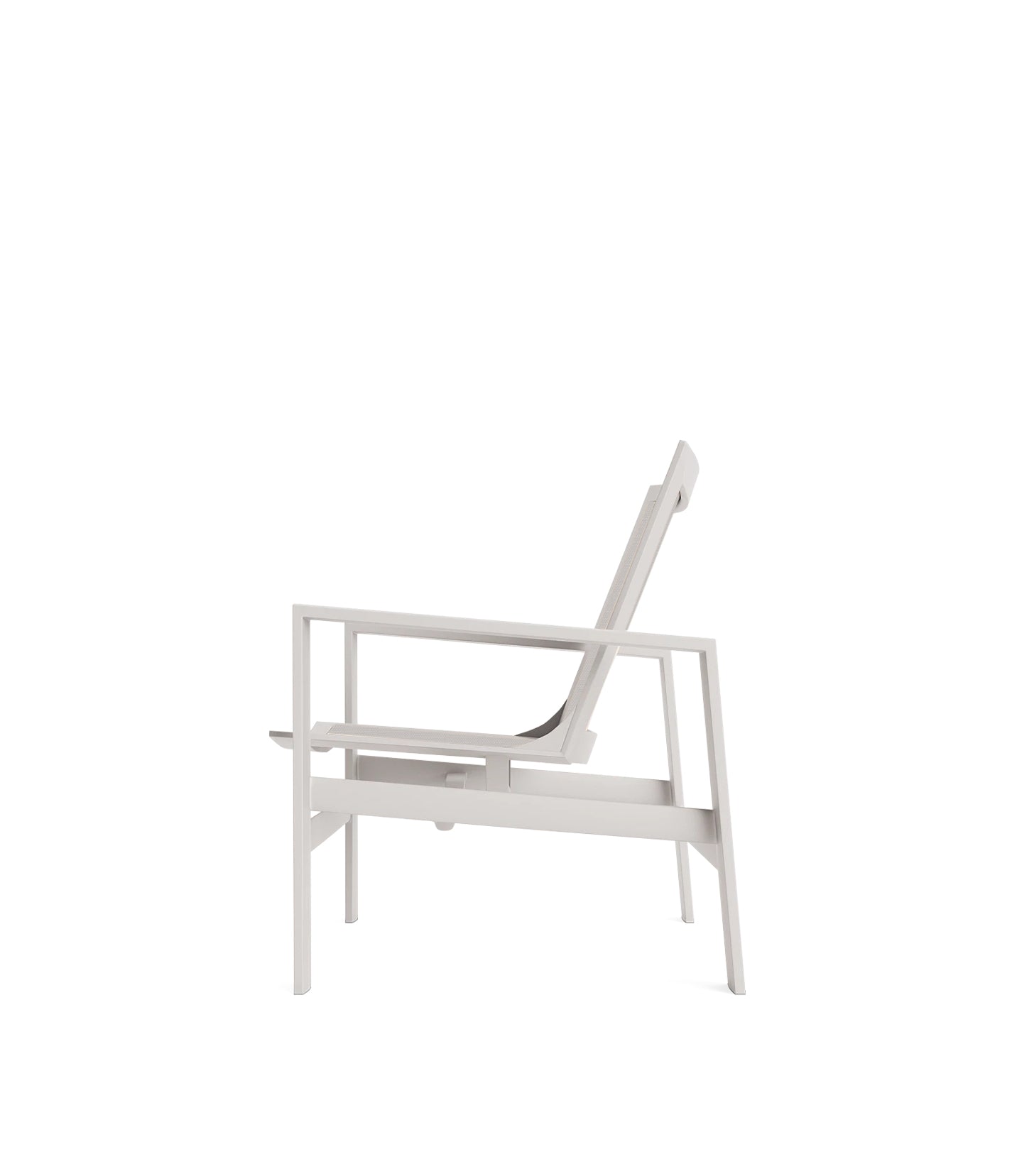 A modernist lounge chair featuring a UV-resistant aluminum frame and a flexible Parabolic sling that conforms to movement, offering ergonomic comfort and sleek design.
