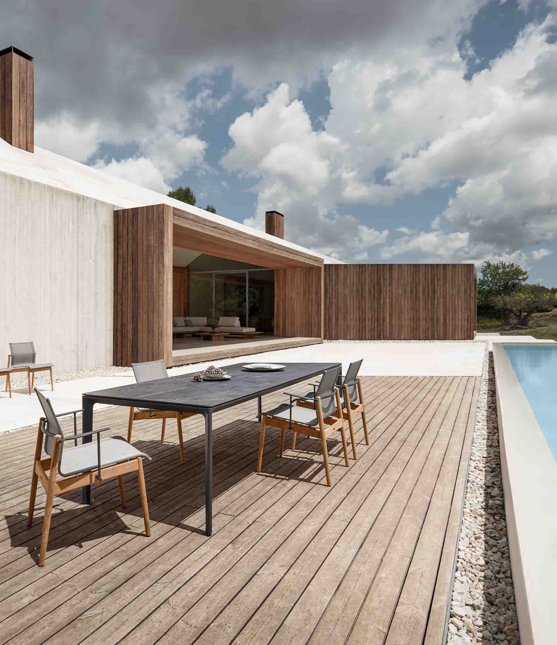 The Gloster Carver Large Dining Table combines modern sophistication with long-lasting durability, making it a stunning centrepiece for any outdoor dining space. Featuring a sleek ceramic Nero tabletop, this table offers a refined aesthetic while providing a smooth, resilient surface that is easy to maintain. The sturdy, powder-coated aluminum frame ensures exceptional stability and resistance to outdoor elements, allowing it to retain its elegant appearance for years. Designed for functionality and style, the Carver Dining Table is ideal for outdoor gatherings. Its timeless design seamlessly integrates into various outdoor settings, offering versatility that complements contemporary and classic décor. With its durable construction and striking presence, the Gloster Carver Dining Table invests in beauty and practicality, ensuring memorable dining experiences in any outdoor environment.