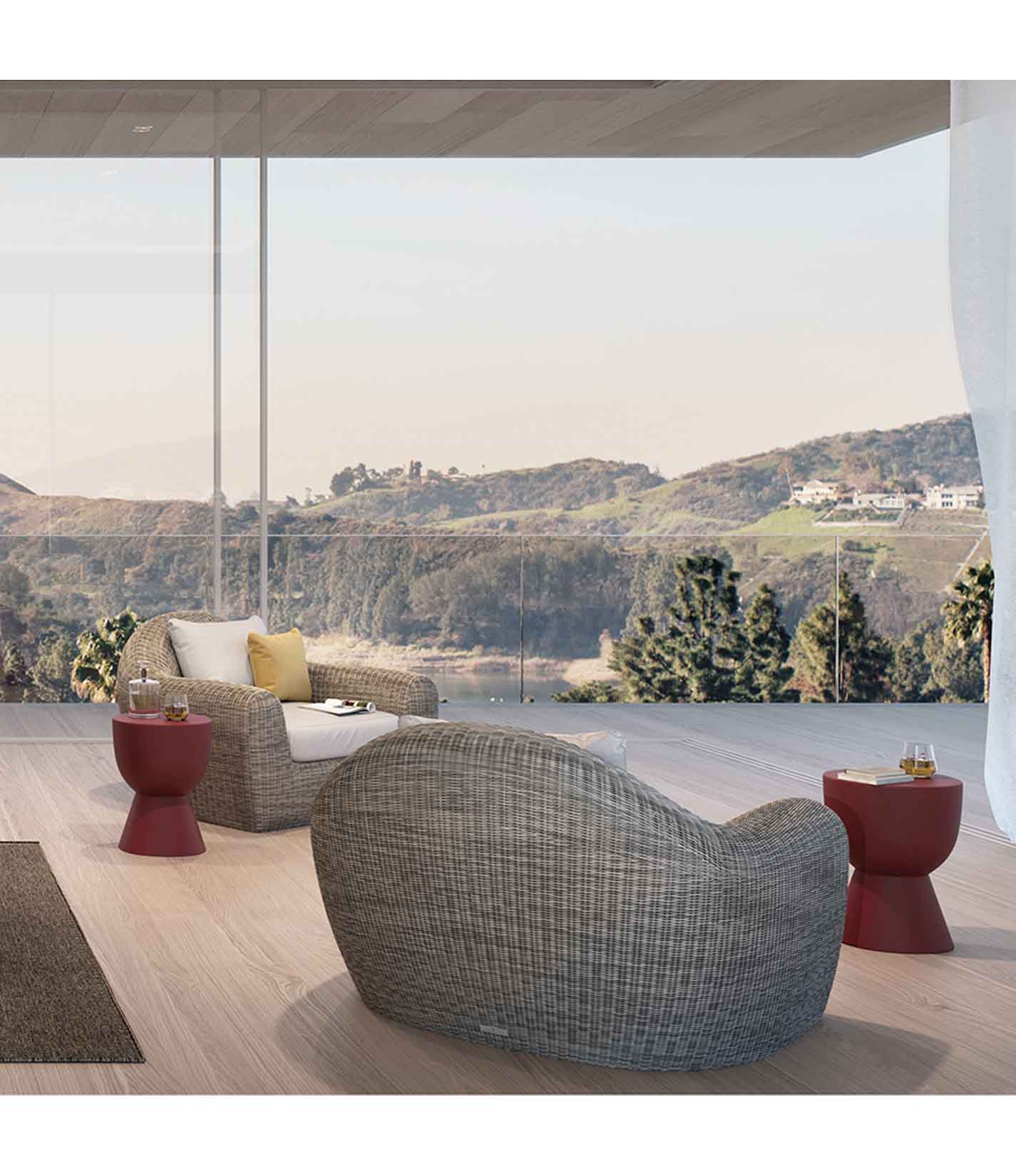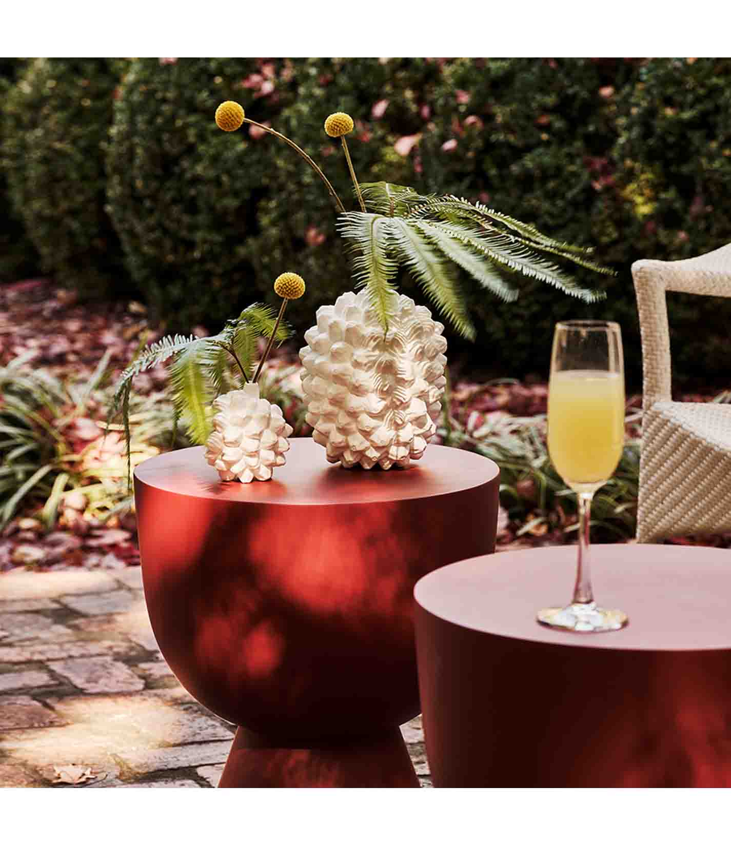 The Drum Side Table is an exceptionally versatile accent that adds a touch of Postmodern-inspired sculptural interest to your indoor or outdoor space.