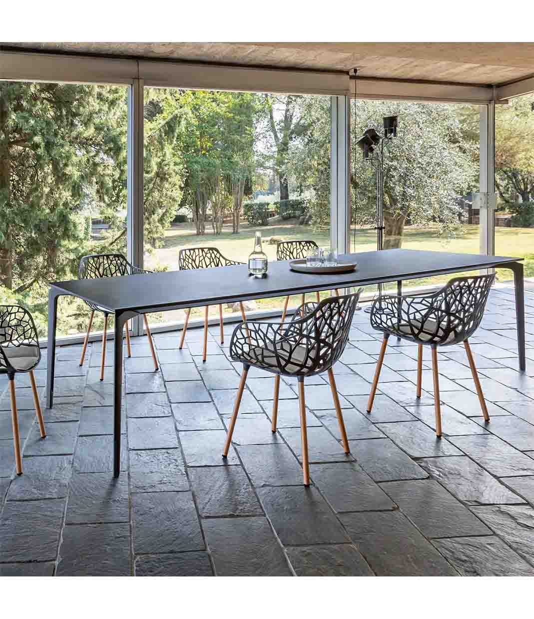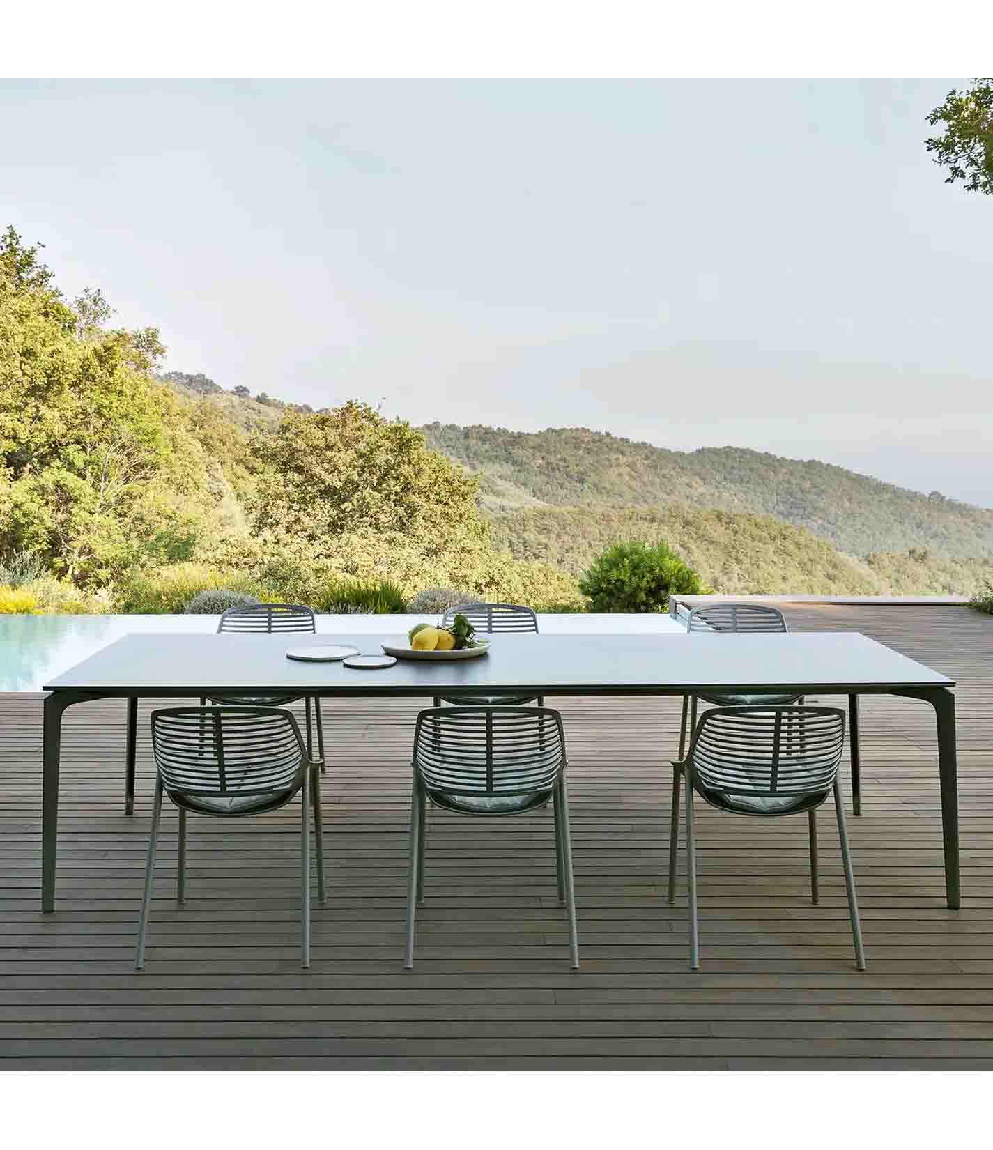 A versatile, extendable dining table defined by clean geometric lines. Its minimal extruded‑aluminium frame supports a customizable top—choose wood, porcelain‑stoneware, or ceramic. Designed for tailored scale and refined simplicity.