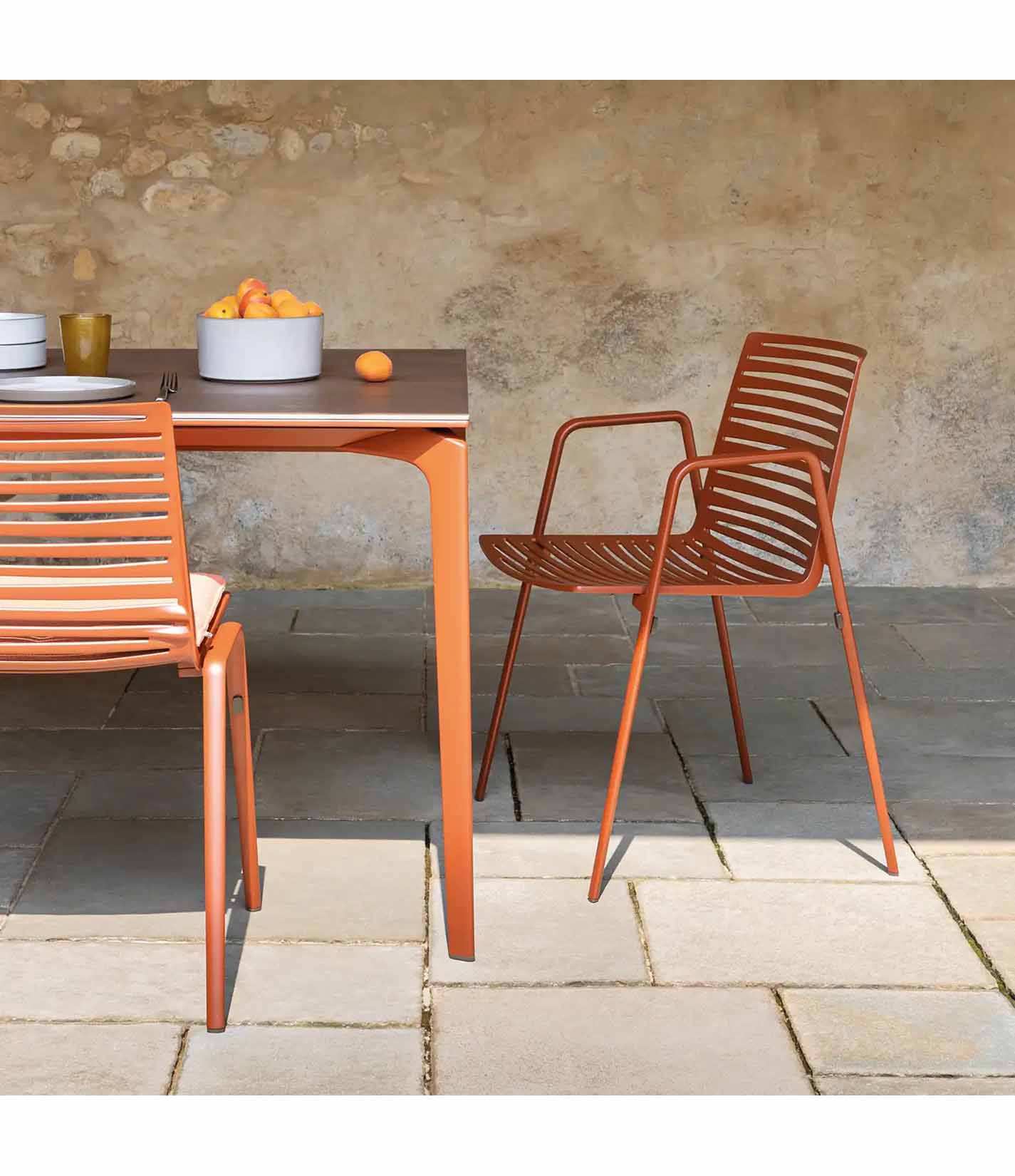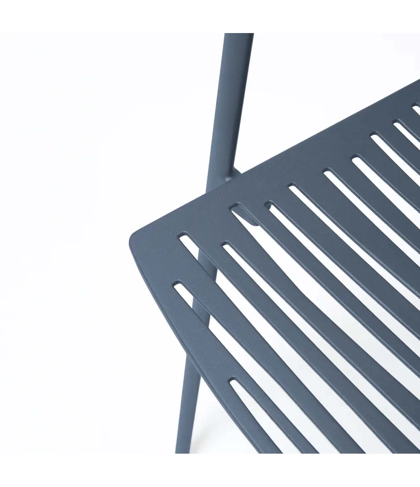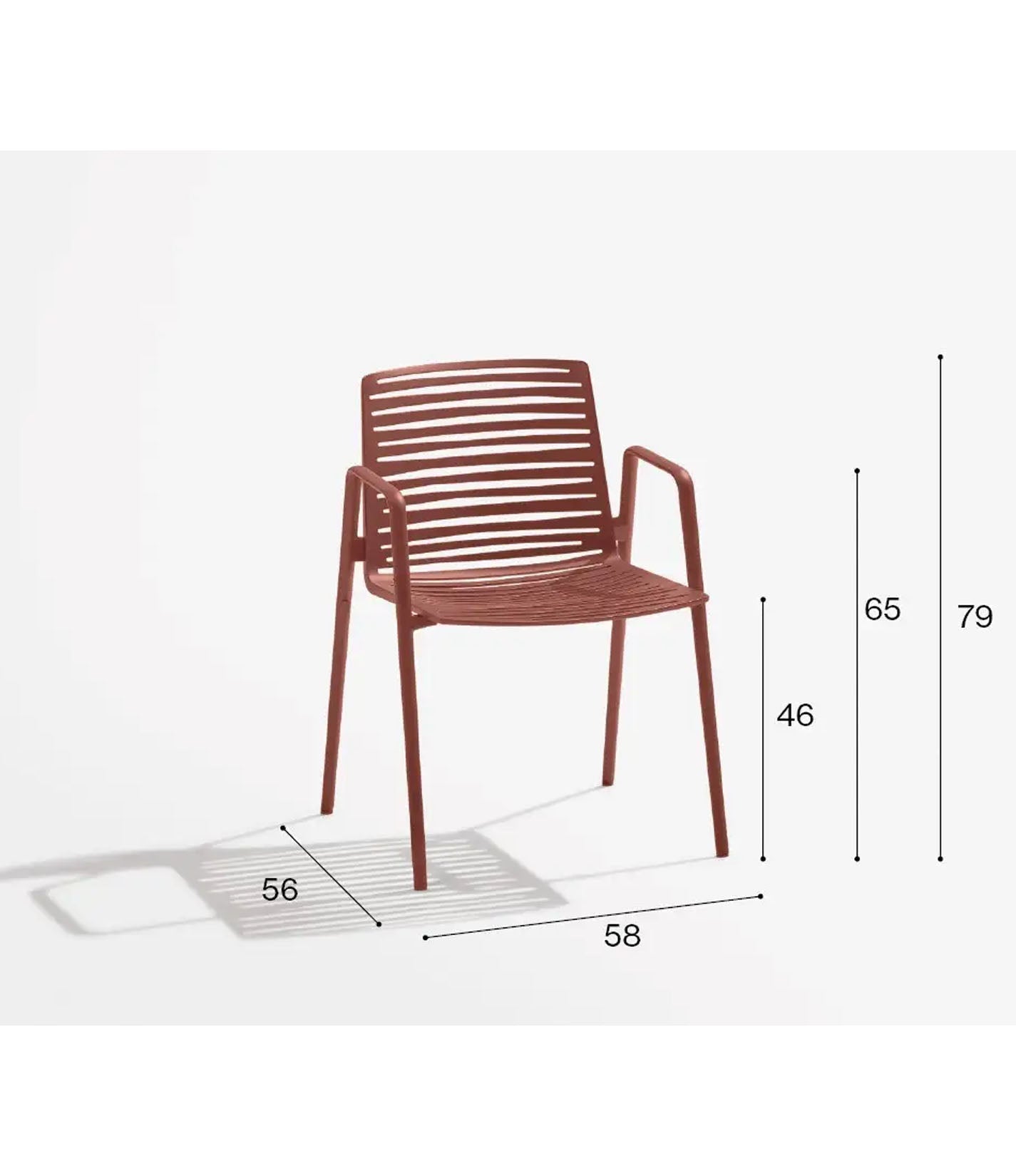 A versatile all-rounder: clean-lined, stackable up to six, and ideal for both patio dining and contract settings. Its sculptural void pattern casts dynamic shadows and invites optional cushions for added comfort.