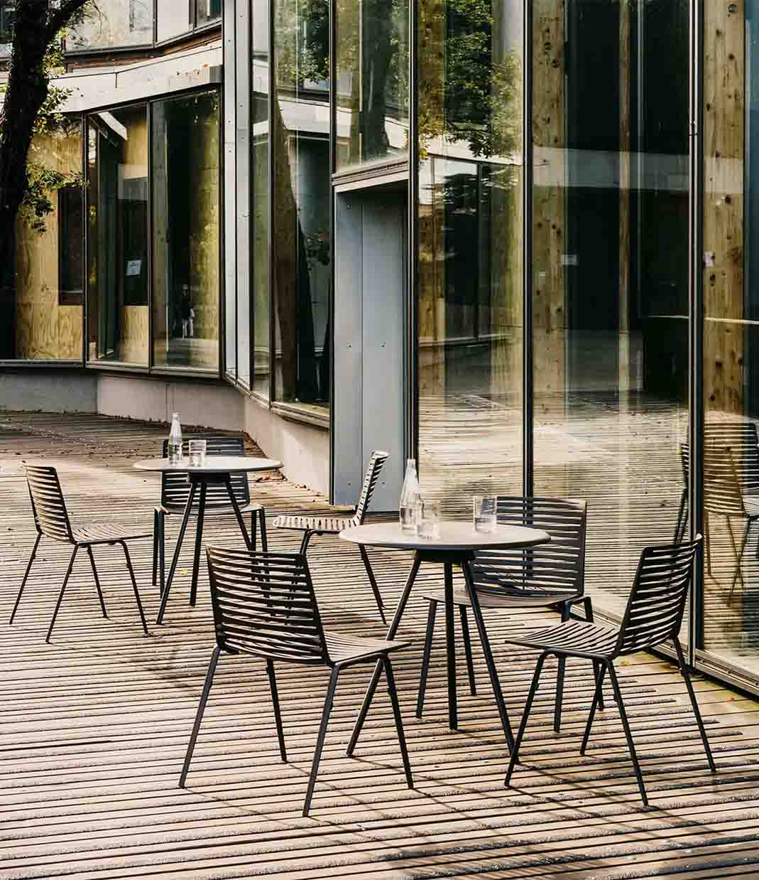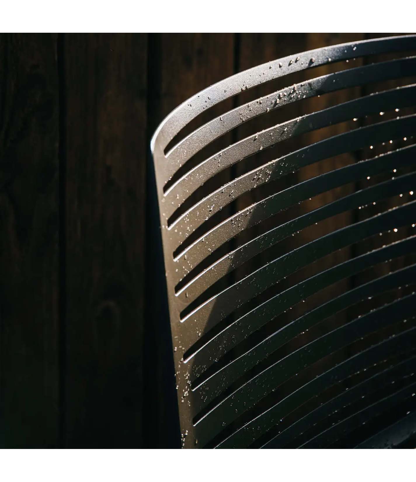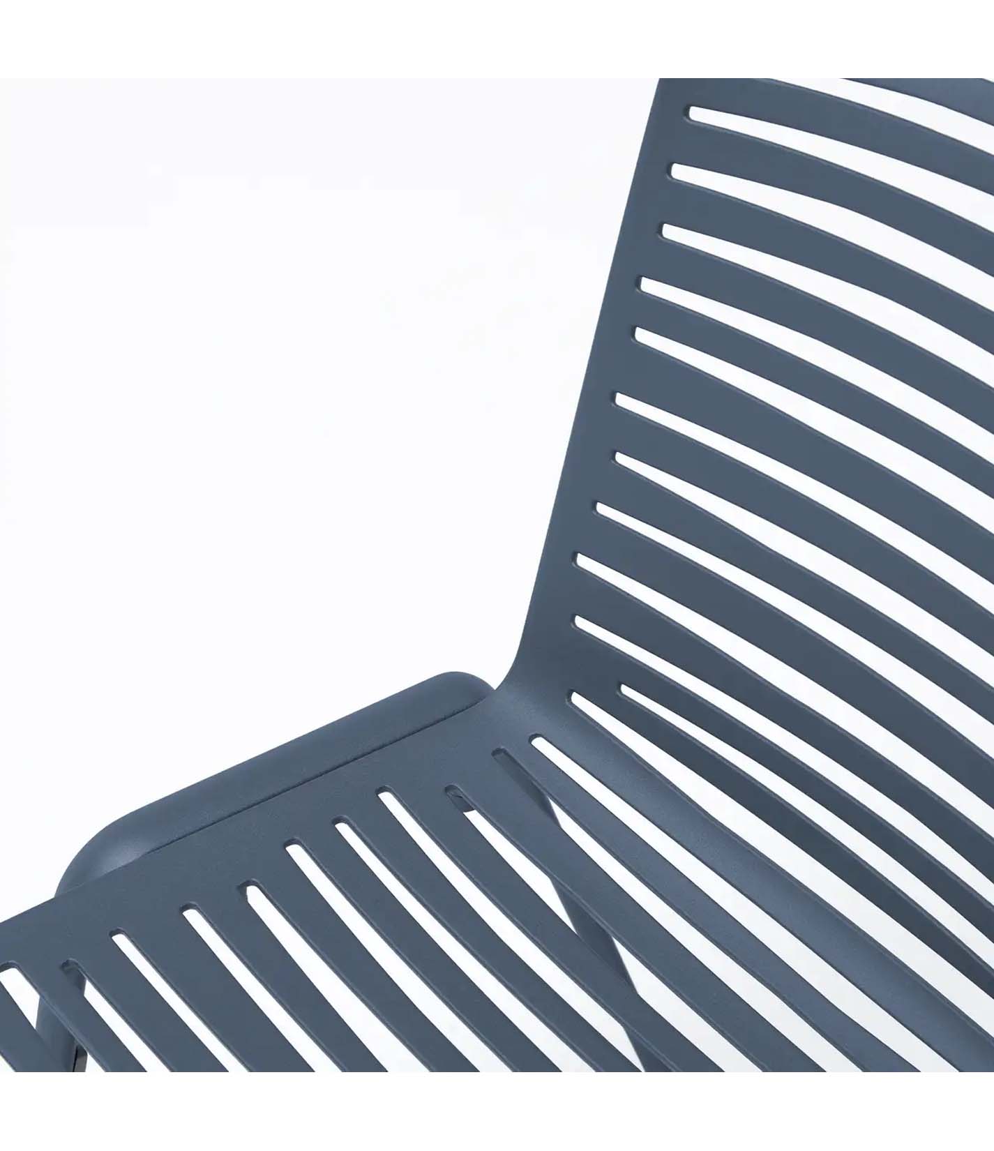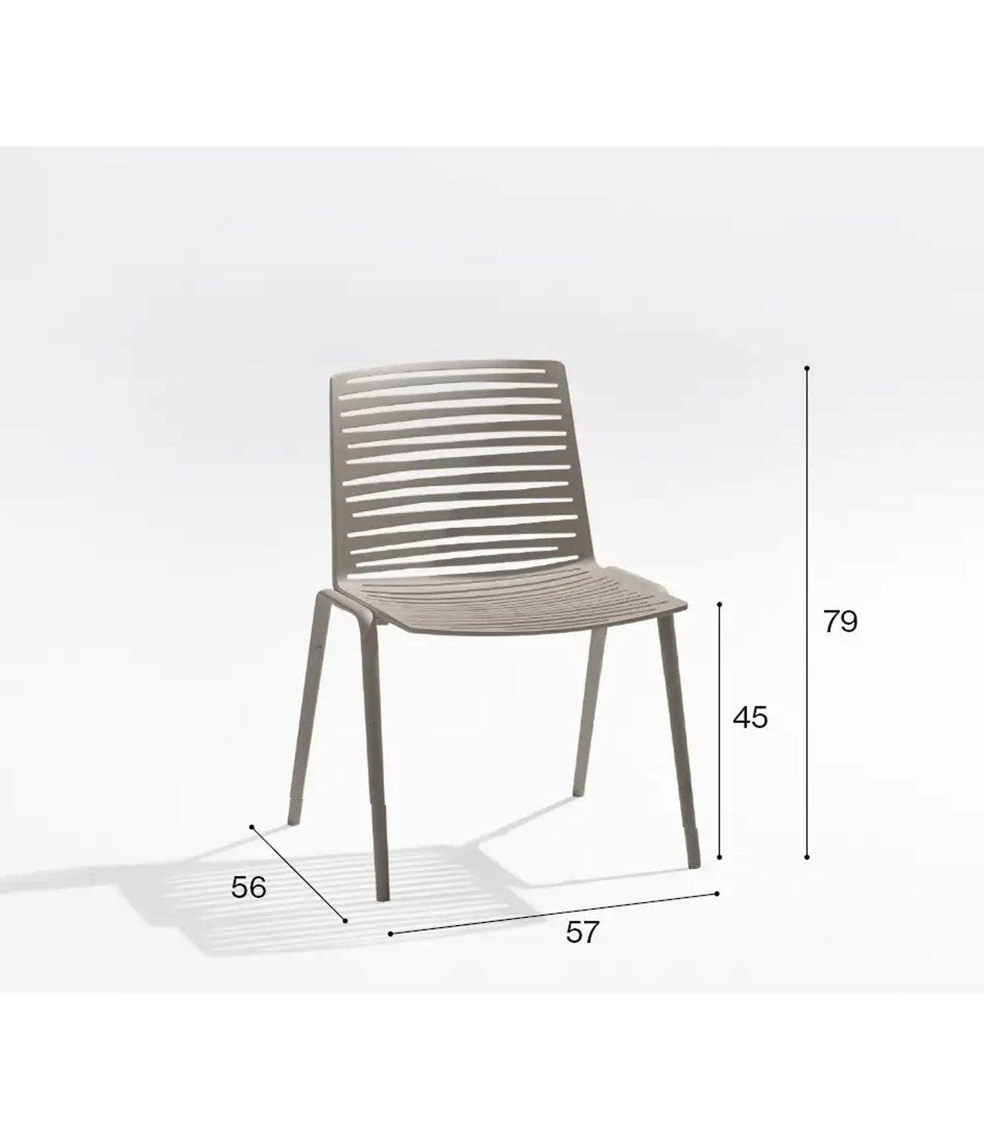 A timeless silhouette that balances form and function. Its open slat design creates dynamic light play, while stacking ability and palette of finishes make it a versatile choice for both residential and contract settings.