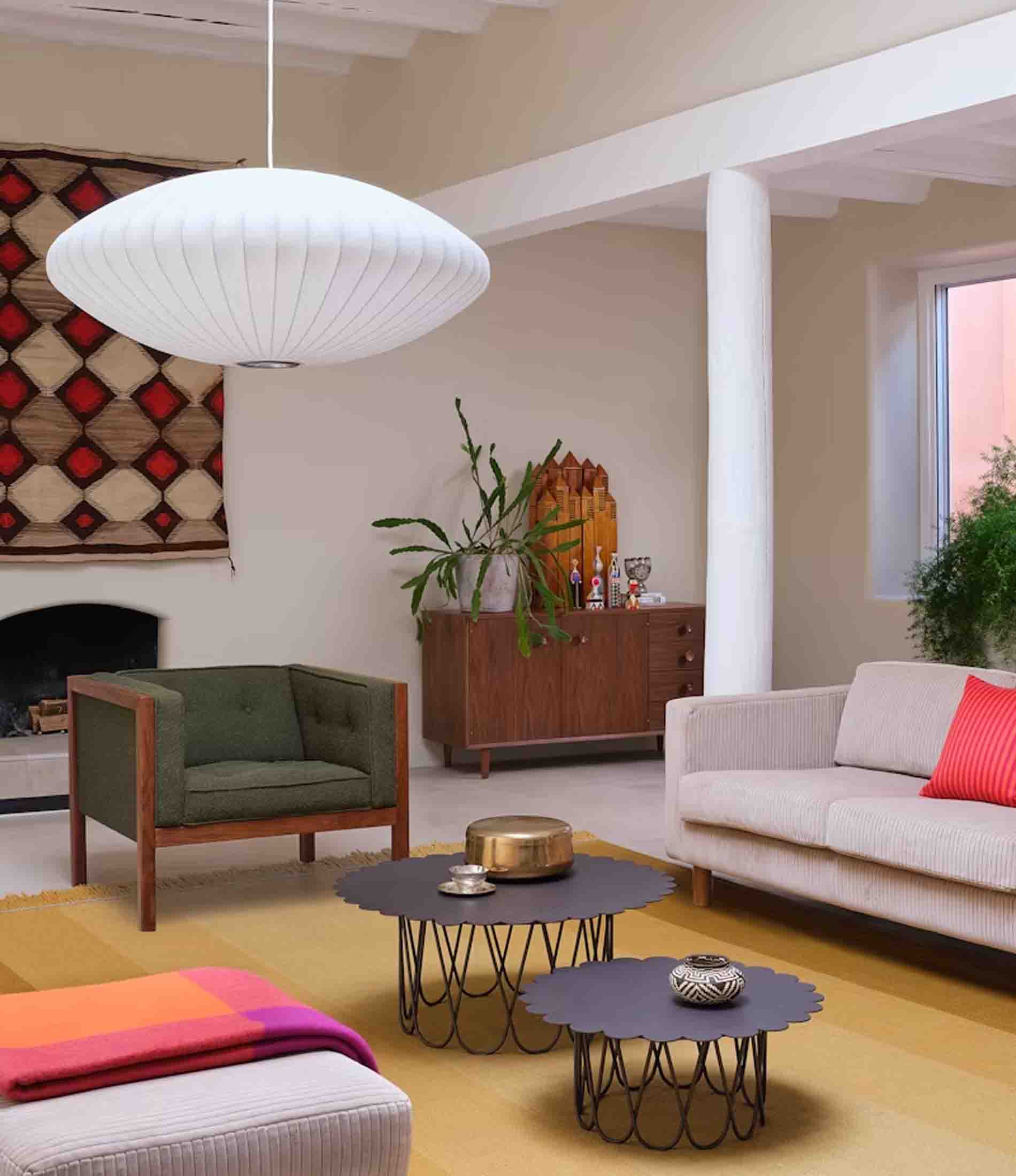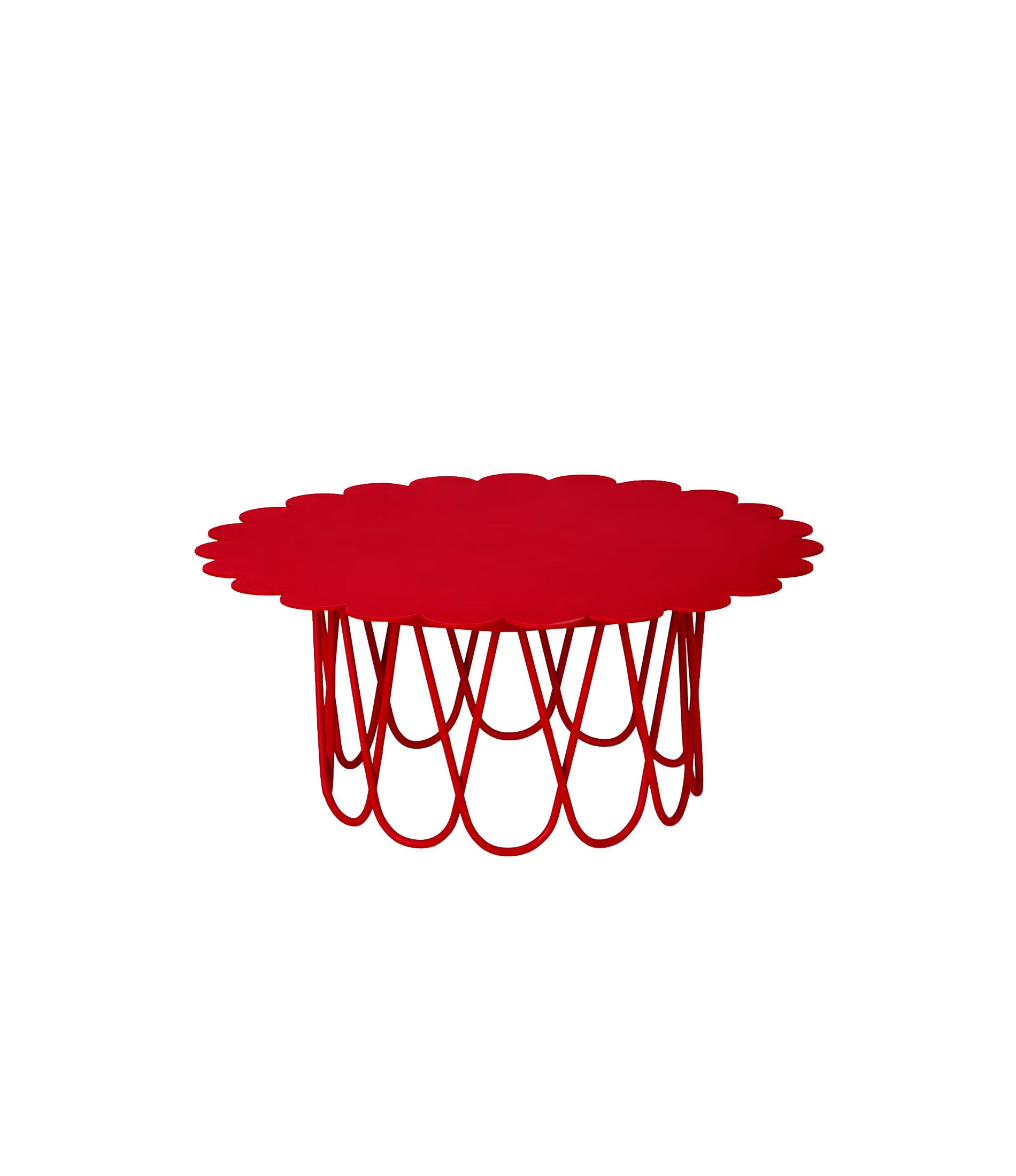 The Girard® Flower Table, designed by Alexander Girard, brings a touch of natural elegance to any space with its scalloped edges and petal-shaped base. Available in two sizes, this versatile table suits both indoor and outdoor settings, allowing for creative arrangements that enhance your environment with a modern, playful charm.