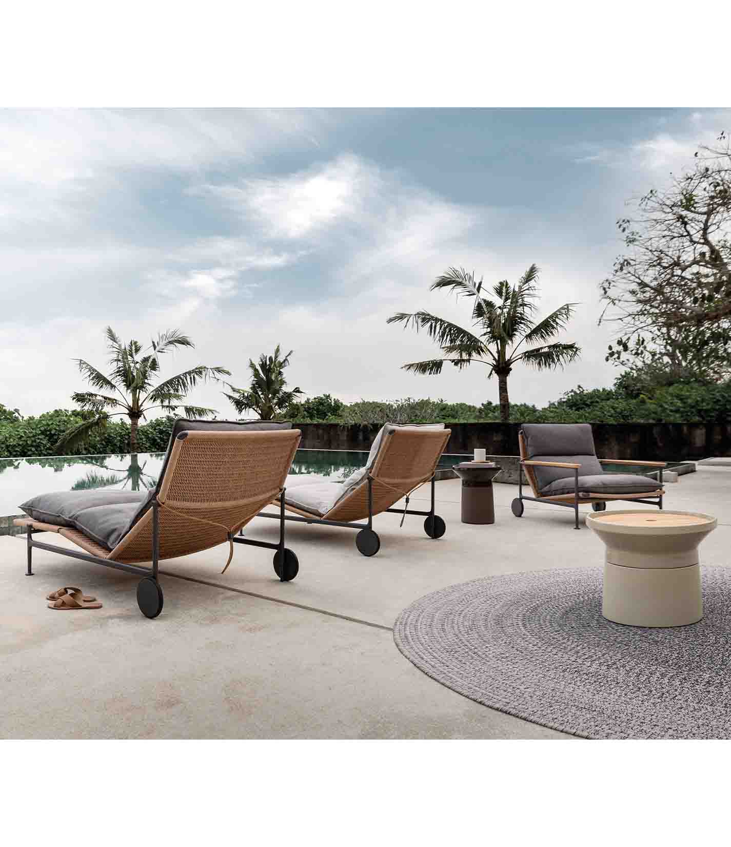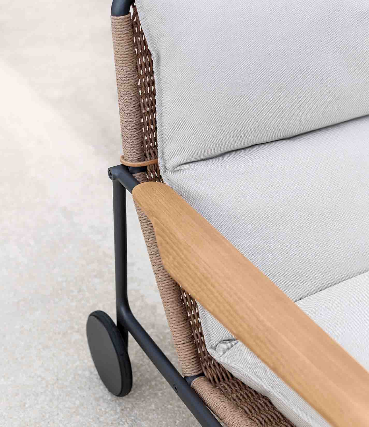 The Zenith Lounge Chair combines a powder-coated aluminum frame with all-weather wicker seating and teak armrests, offering durability and elegance. Lightweight and easy to move, it provides a stylish, low-maintenance solution for comfortable outdoor relaxation.
