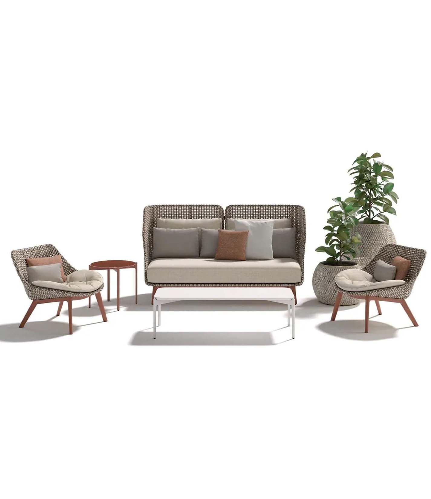 The Mbrace Aluminum Club Chair combines the striking design and cozy comfort of the MBRACE lounge chair with a more compact and versatile form. Crafted from durable DEDON Fiber woven over a lightweight aluminum frame, it features a powder-coated aluminum base for enhanced stability and weather resistance. This chair is ideal for both indoor and outdoor settings, offering expert-level craftsmanship and lasting elegance in a smaller footprint.