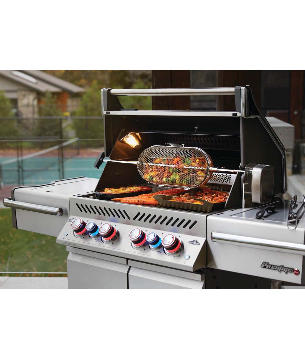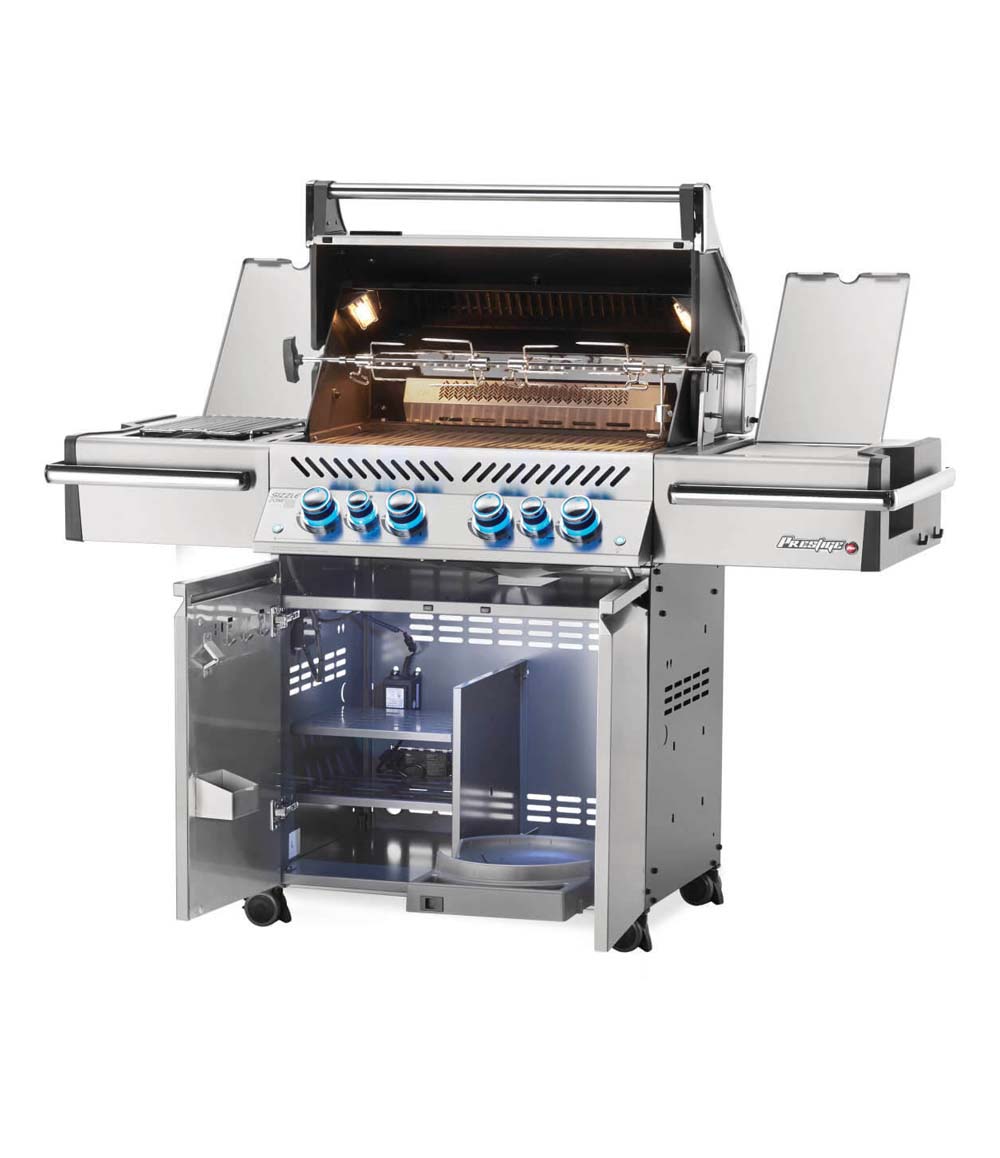 The Napoleon Prestige PRO™ 500 RSIB Grill delivers professional-grade performance in a sleek, stainless steel design. With advanced features like infrared burners, customizable lighting, and integrated accessories, it offers a luxurious grilling experience for outdoor enthusiasts.