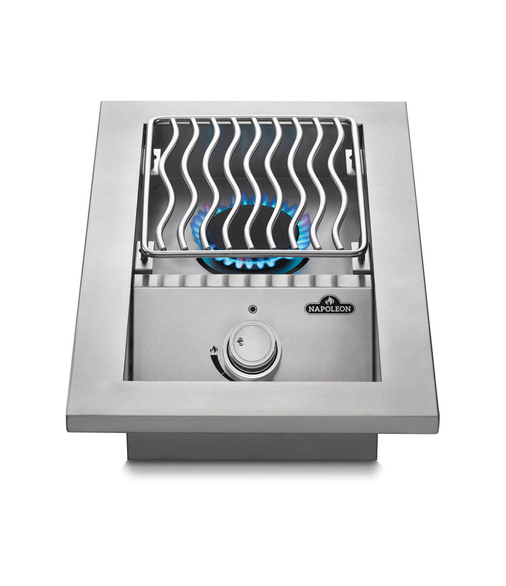 Designed for seamless integration into your custom outdoor kitchen, the Napoleon 500 Series Single Range Top Burner delivers added versatility to your culinary setup. Whether you're simmering sauces or sautéing sides, this compact yet powerful burner elevates your outdoor cooking experience. Its sleek, stainless steel design complements your grill while maintaining durability and style through every season.