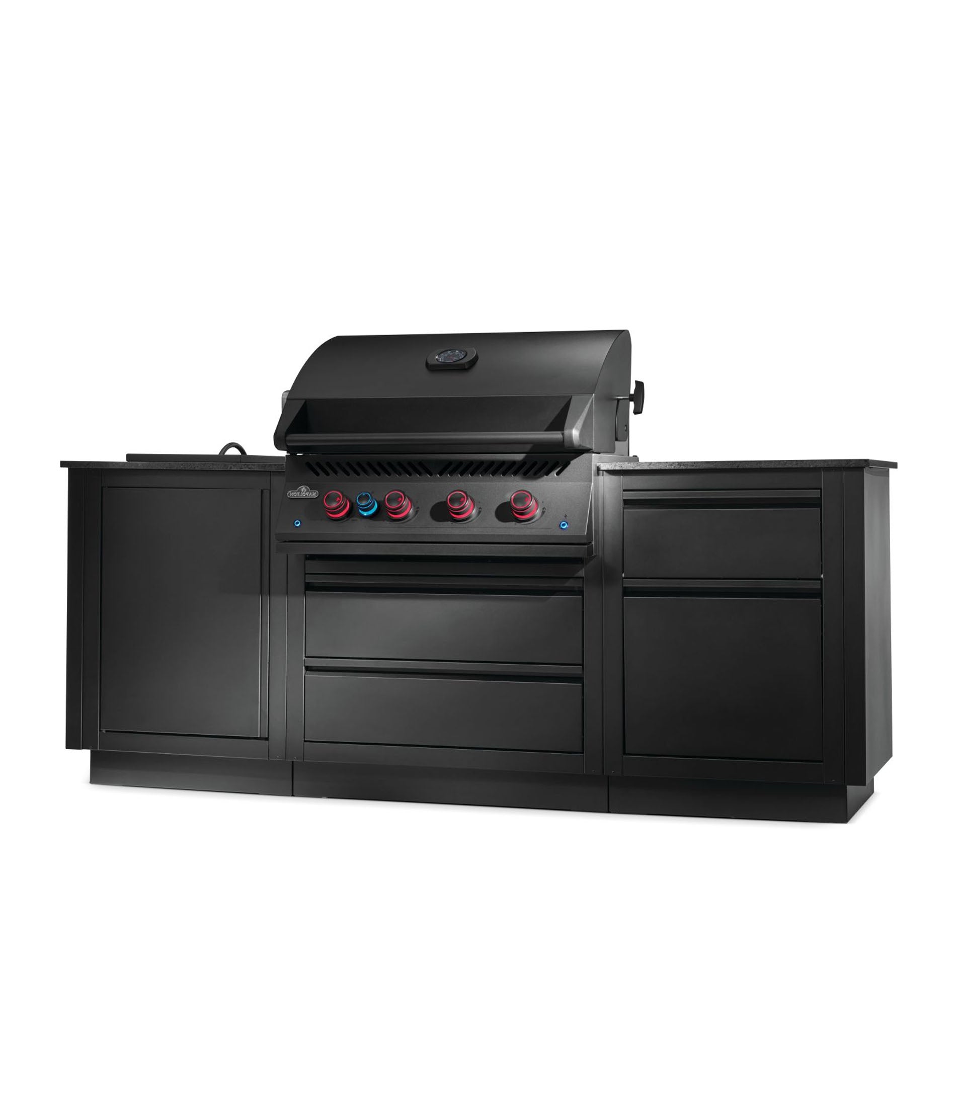 The Napoleon OASIS™ 300 Outdoor Kitchen with Built-in 700 Series 32" Grill is a sophisticated addition to any modern outdoor living space. Its wing-shaped modular island design offers ample storage and workspace, complemented by a full-sized, 700 Series 32-inch gas grill head. Crafted with durable matte black, powder-coated galvanic steel, this kitchen is built to withstand the elements. Features like a rollout propane tank storage cabinet and customizable countertop options ensure both functionality and style, making it a perfect centrepiece for outdoor entertaining.