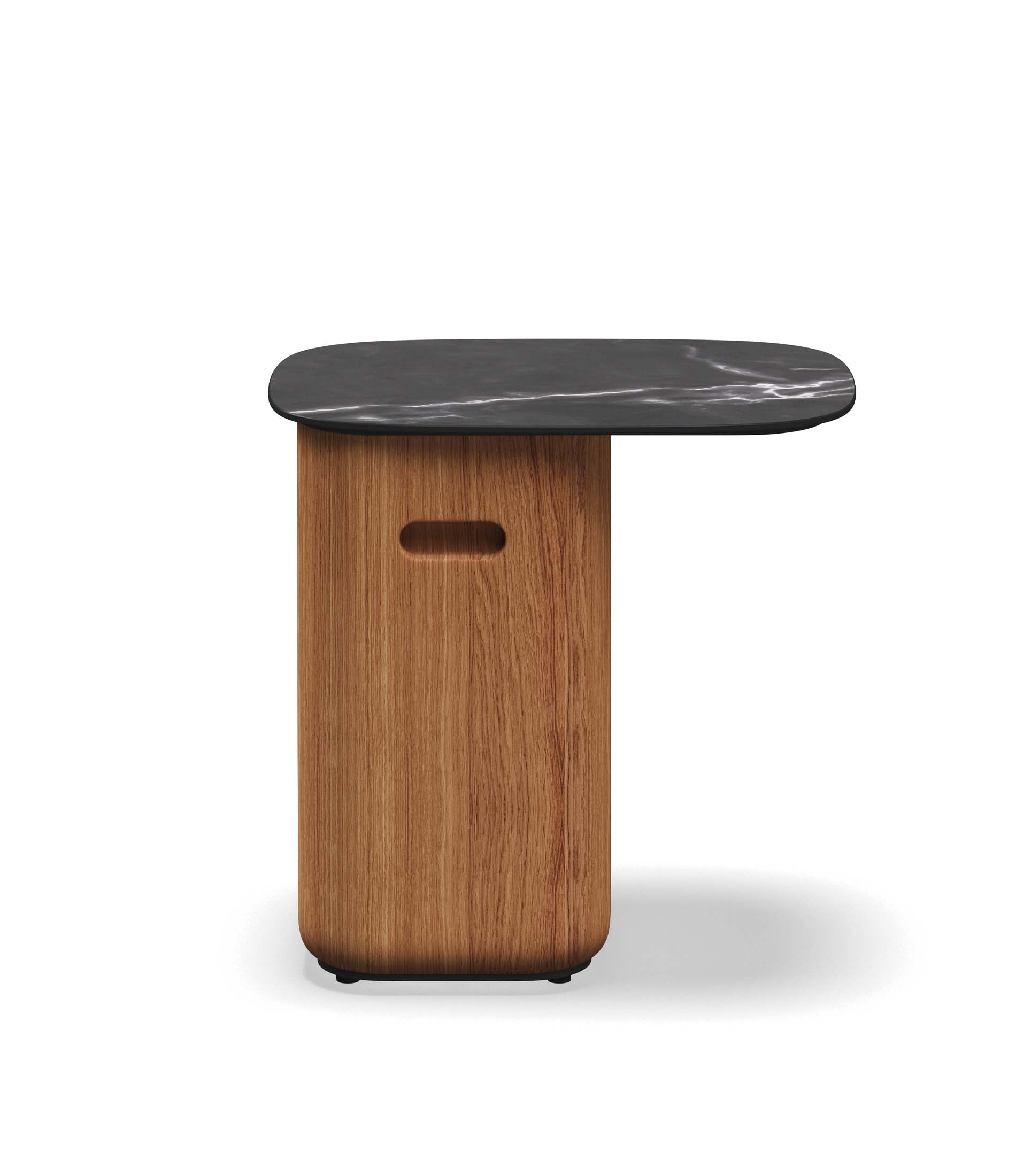 The Gloster Omada Side Table is a versatile and stylish addition to outdoor spaces. Its ceramic top adds a modern touch, while the natural teak base showcases the warmth and durability of quality wood. Whether used for drinks or decoration, this table offers a practical surface for any outdoor setting.