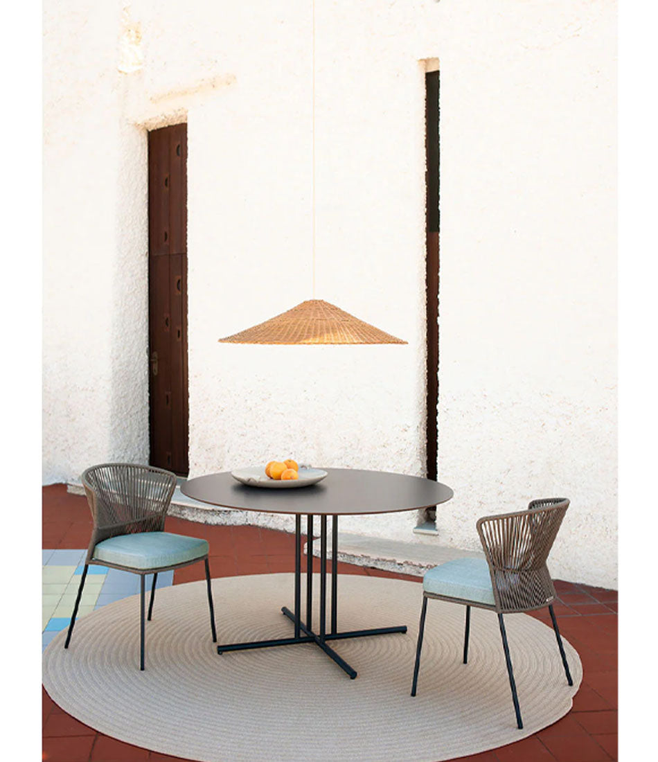 Part of the versatile Graphic collection, this table’s streamlined silhouette and open frame create a clean visual lightness. It blends seamlessly with seating families like Keel, offering flexible styling and year-round usability in any spaces.