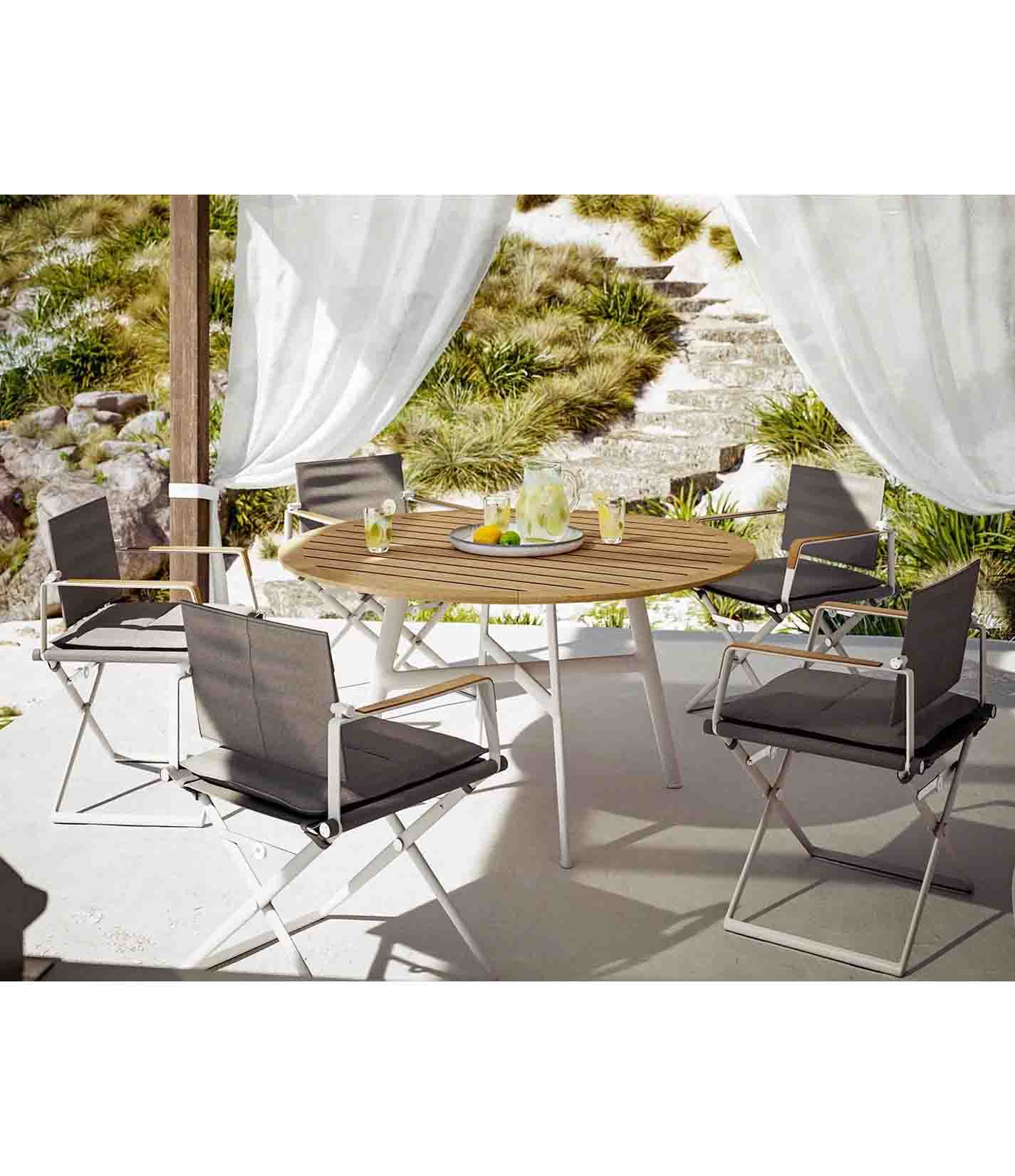 The SeaX Dining Armchair in Teak exemplifies the refined elegance and innovative design characteristic of the award-winning SEAX collection by French designer Jean-Marie Massaud. Crafted with meticulous attention to detail, this armchair combines a sophisticated mix of materials to deliver both comfort and style. Its folding feature enhances versatility, making it an ideal choice for modern dining spaces seeking a blend of functionality and contemporary aesthetics.
