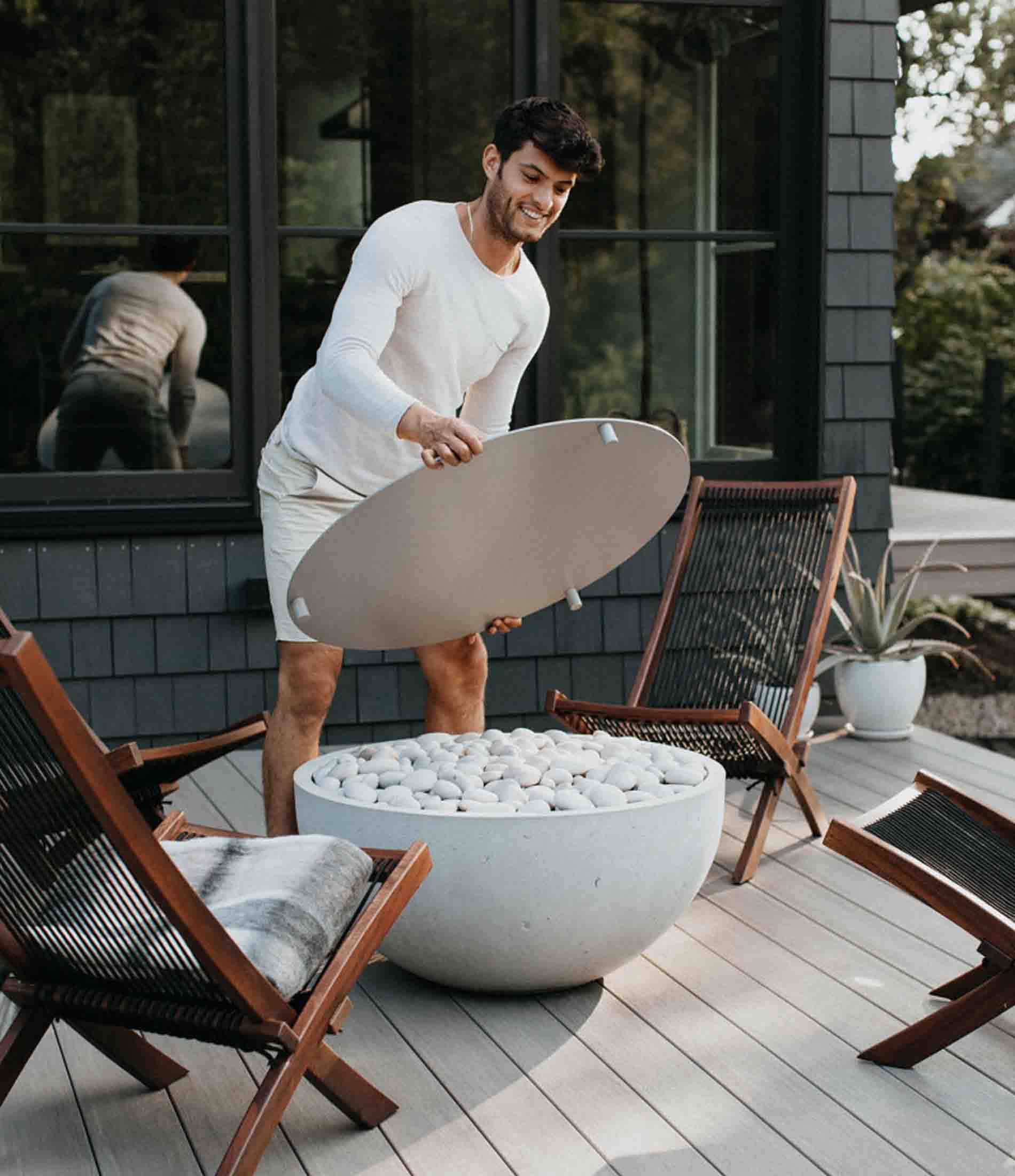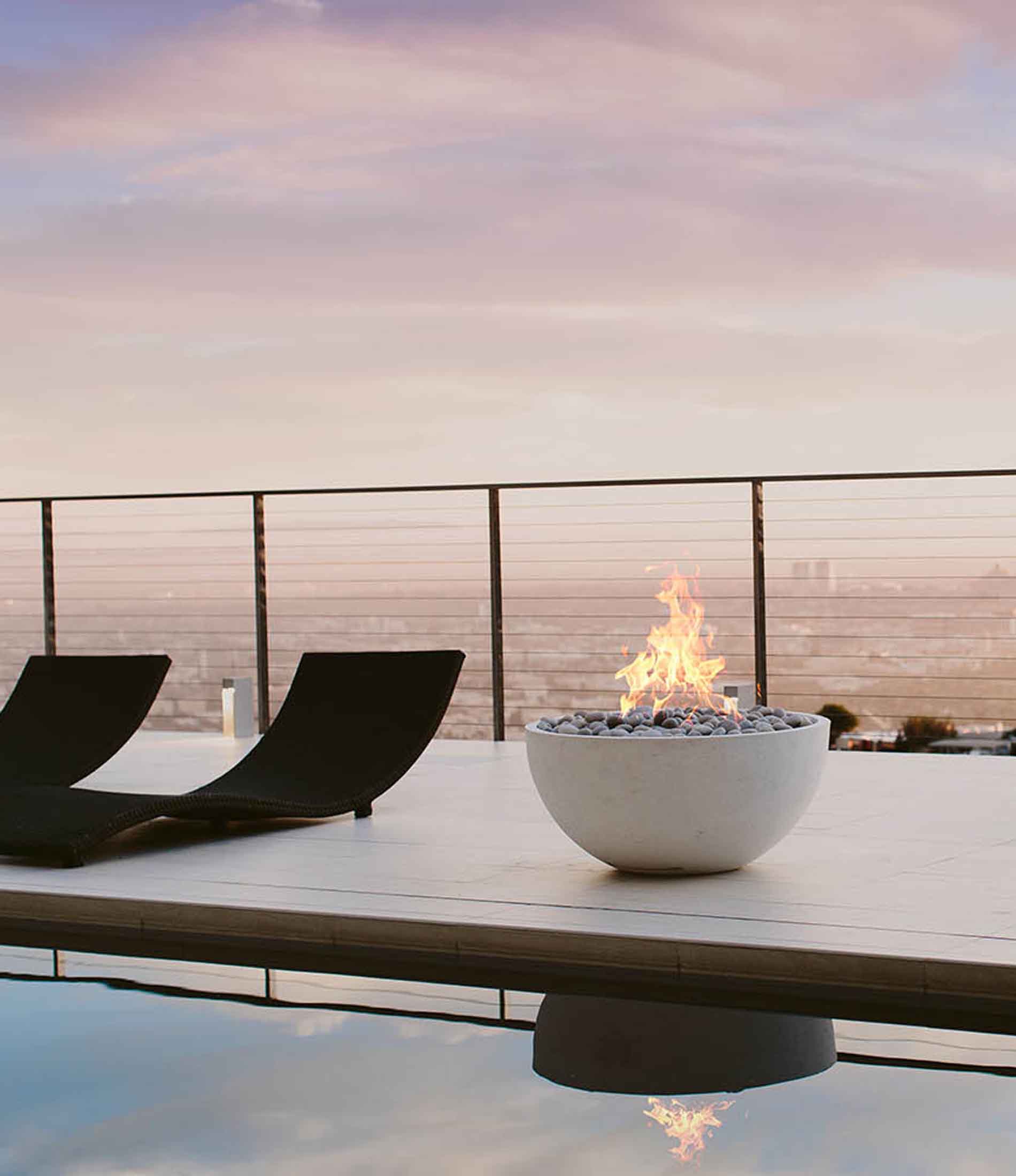 Create a stunning focal point with the Dekko Lightweight Concrete Fire bowl. Handcrafted from ultra-light concrete, it offers effortless installation and lasting durability, perfect for patios, rooftops, or commercial spaces, making every gathering unforgettable.