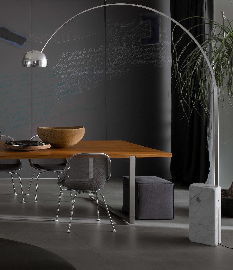 Castiglioni 兄弟从他们每天看到的东西中汲取了他们对 Arco 灯的灵感:街灯。使用市售零件,他们着手设计一款技术创新且具有视觉吸引力的产品—一种功能齐全但无需四处走动的灯。他们用大理石底座完成了它,知道同样的重量会占用更少的空间,让 Arco 能够住在—而不是接管—它照亮的房间。
