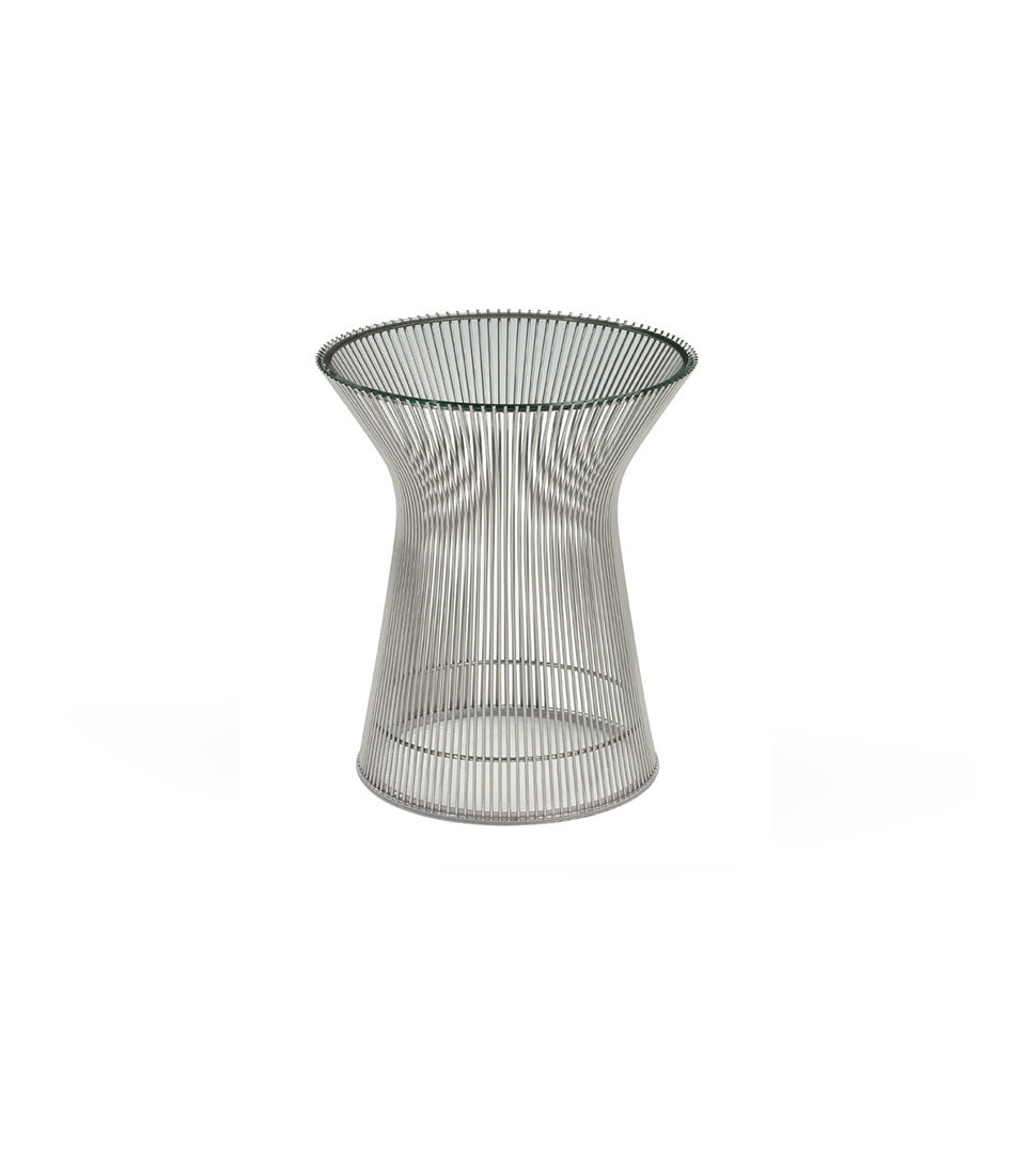 1966 年,Platner 系列捕捉到了开始渗透到现代词汇中的“装饰性、温柔、优雅”的形状。标志性的边桌是通过将弯曲的钢棒焊接到圆形框架上制成的,同时用作结构和装饰。