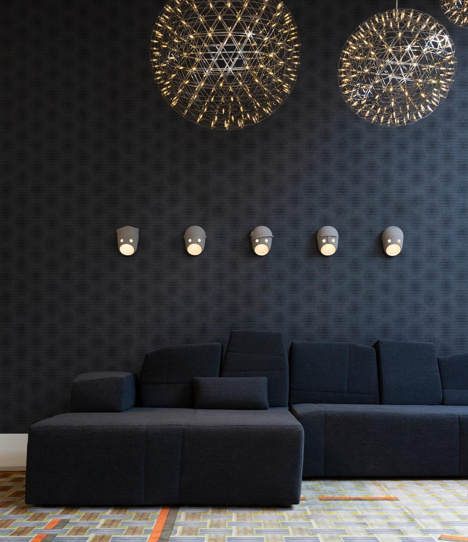Moooi 的派对壁灯让夸张的人类表情栩栩如生。受到大胆个性和家庭动态的启发,设计师二人组 Kranen 和 Gille 巧妙地创造了类似于震惊面孔的壁灯。这款由陶瓷制成的触感显示屏具有粗糙的纹理和颗粒状的饰面,增强了其整体吸引力,而内部的高品质 LED 照明通过眼睛和嘴巴渗透,照亮了周围的空间。单独安装或与此系列中的其他面混合安装,为走廊、大堂或生活空间带来迷人的外观。